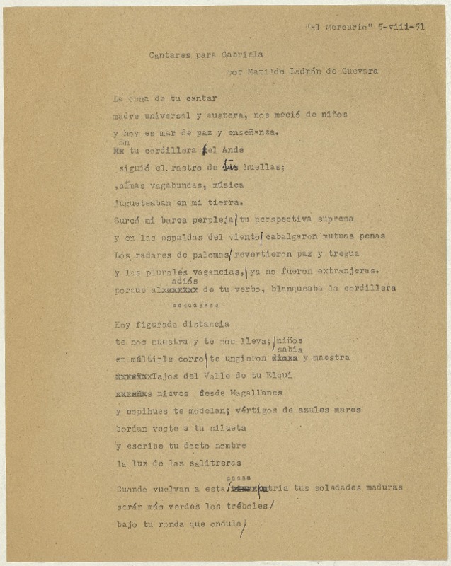 Cantares para Gabriela [manuscrito] por Matilde Ladrón de Guevara.