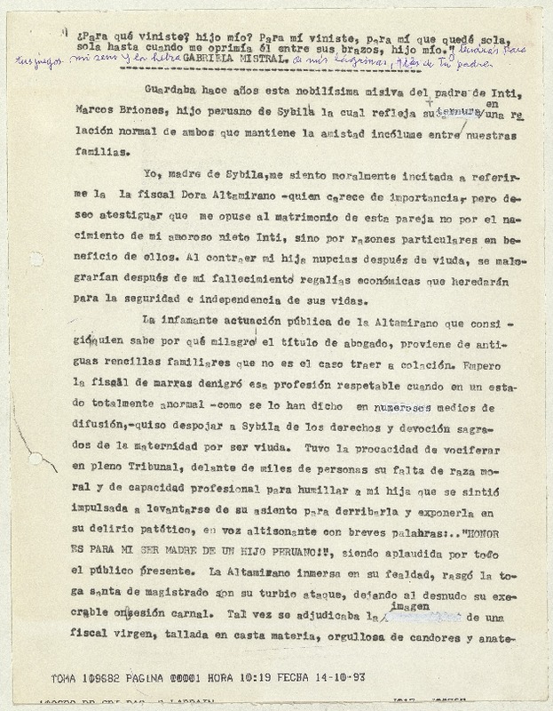Prosas chilenas - Manuscritos chilenos - Mistral, Gabriela