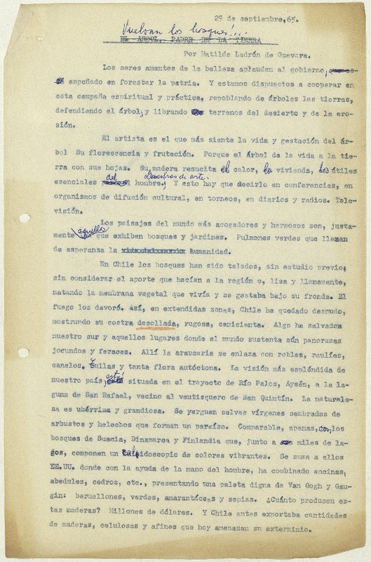 Vuelvan los bosques [manuscrito] por Matilde Ladrón de Guevara.