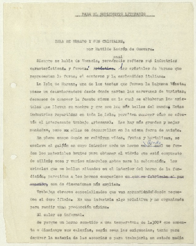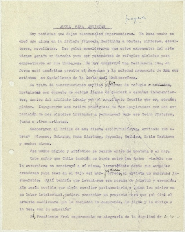 Aldea para artistas [manuscrito] Matilde Ladrón de Guevara.