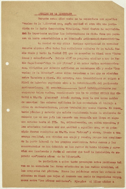 ¿Vuelos de la libertad? [manuscrito] Matilde Ladrón de Guevara.