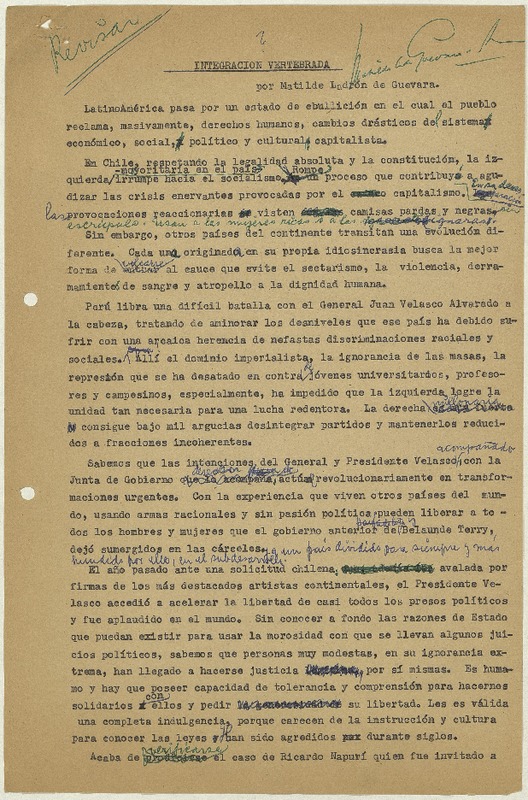 Testamento político personal [manuscrito] Matilde Ladrón de Guevara.
