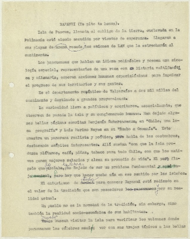 Rapanui [manuscrito] Matilde Ladrón de Guevara.