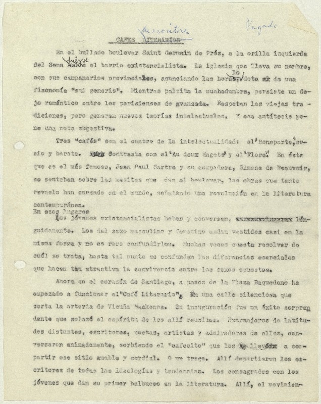 Cafés de escritores [manuscrito] Matilde Ladrón de Guevara.