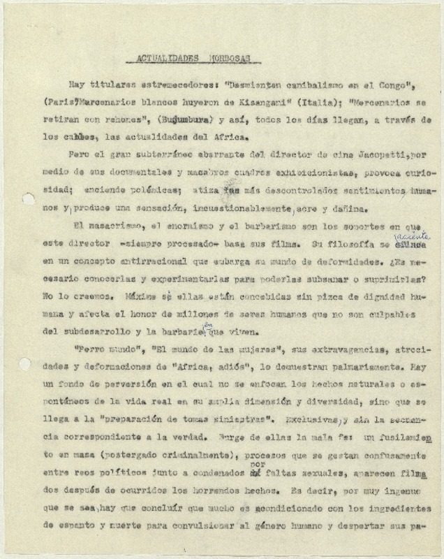 Actualidades morbosas [manuscrito] Matilde Ladrón de Guevara.