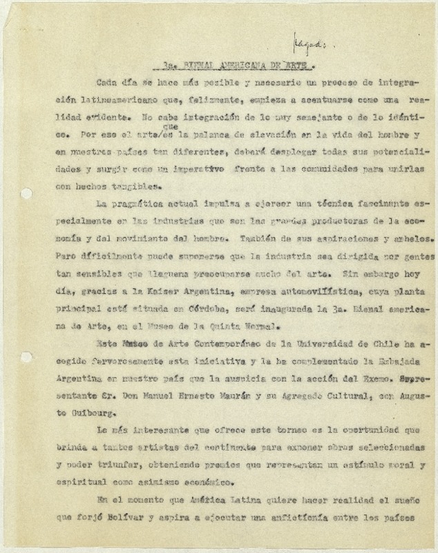 3a. bienal americana de arte [manuscrito] Matilde Ladrón de Guevara.