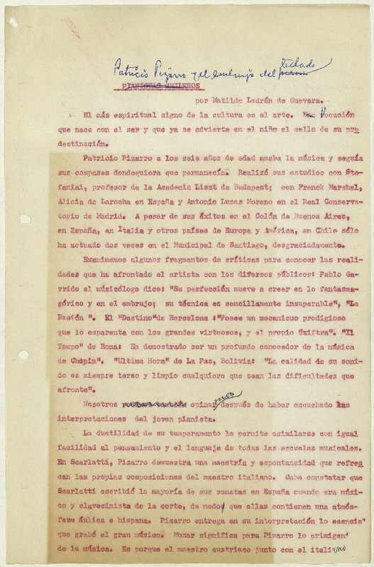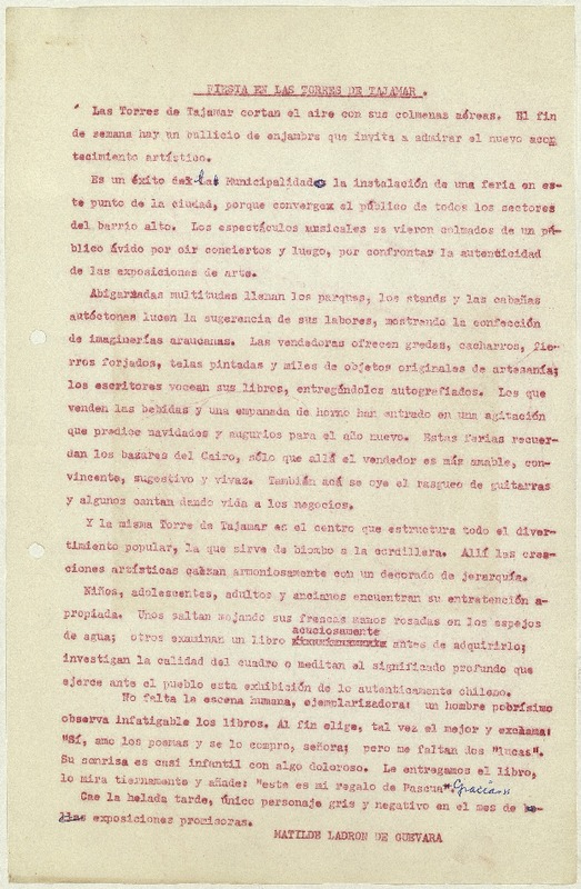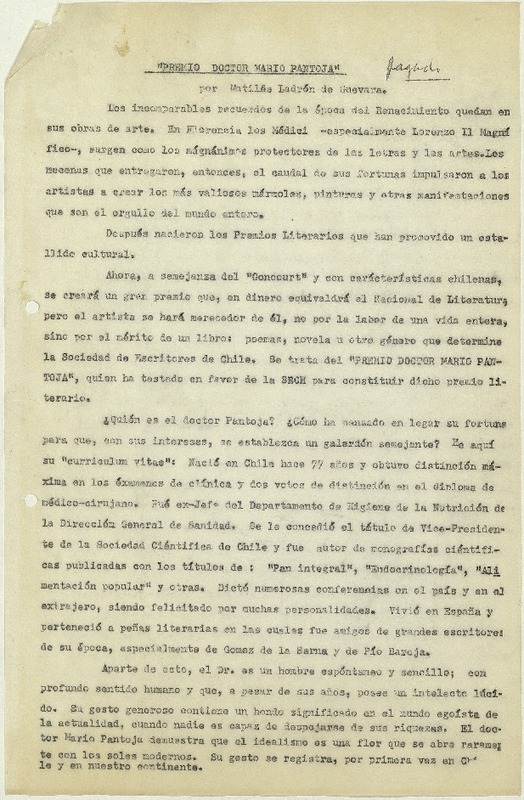 Manuscritos - Artículos chilenos - Ladrón de Guevara, Matilde - Manuscritos chilenos