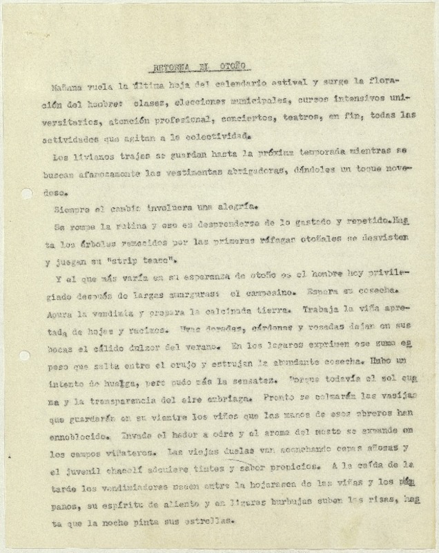 Retorna el otoño [manuscrito] Matilde Ladrón de Guevara.