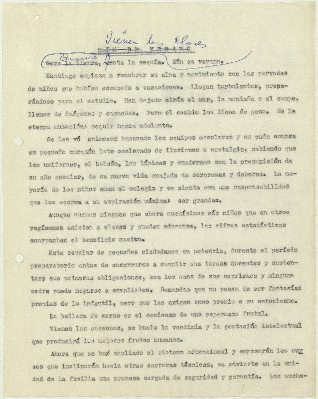 Vienen las clases [manuscrito] Matilde Ladrón de Guevara.