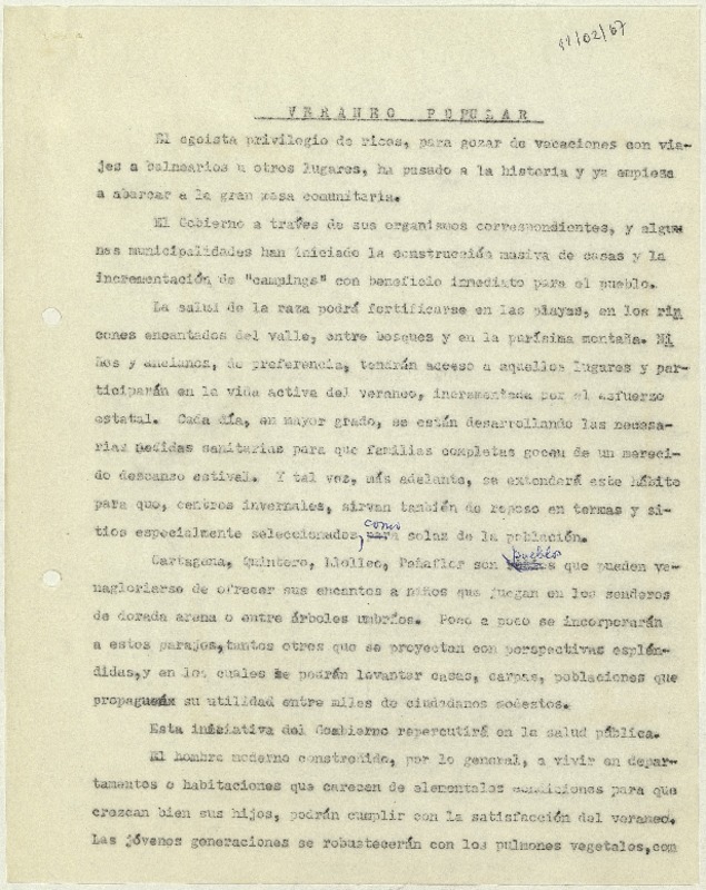 Veraneo popular [manuscrito] Matilde Ladrón de Guevara.