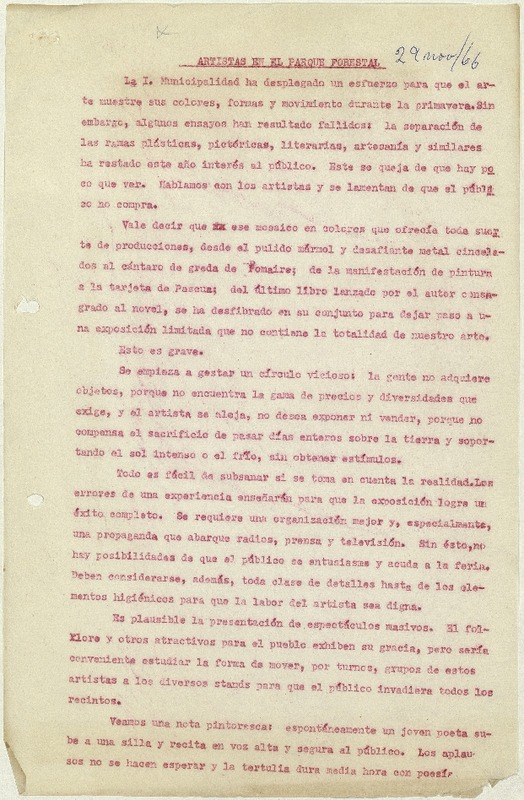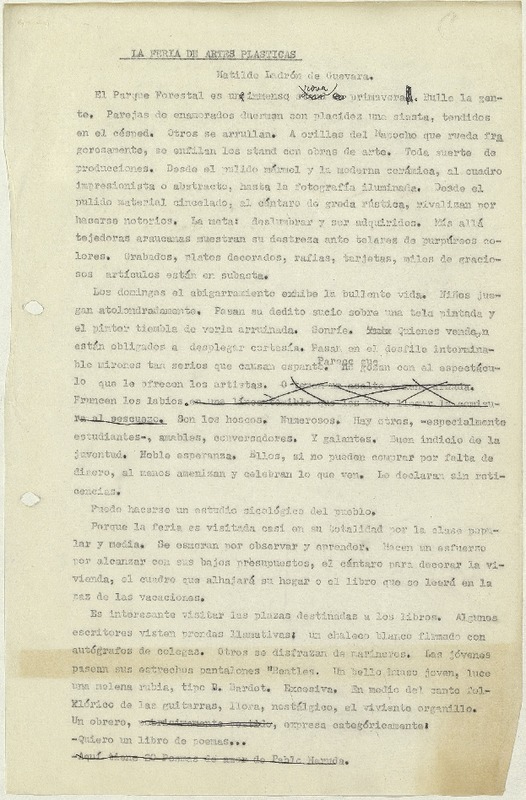 Artistas en el Parque Forestal [manuscrito] Matilde Ladrón de Guevara.
