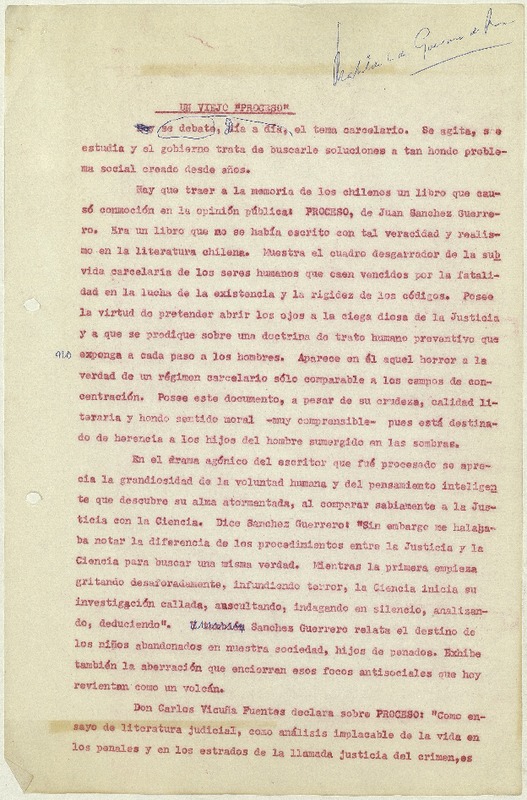 Un viejo proceso [manuscrito] Matilde Ladrón de Guevara.