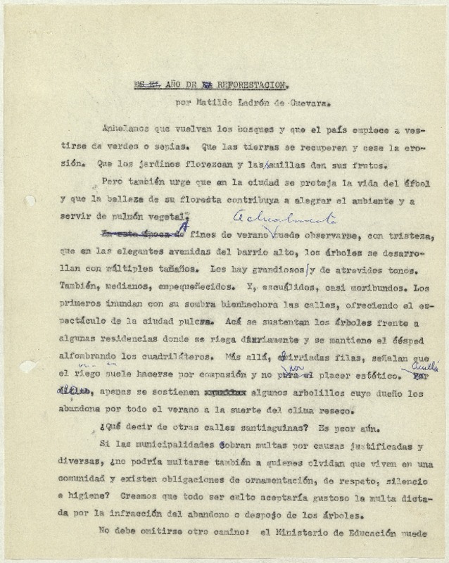 Año de reforestación [manuscrito] Matilde Ladrón de Guevara.