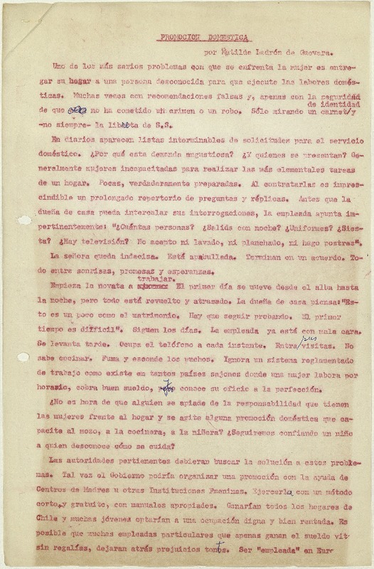 Promoción doméstica [manuscrito] Matilde Ladrón de Guevara.