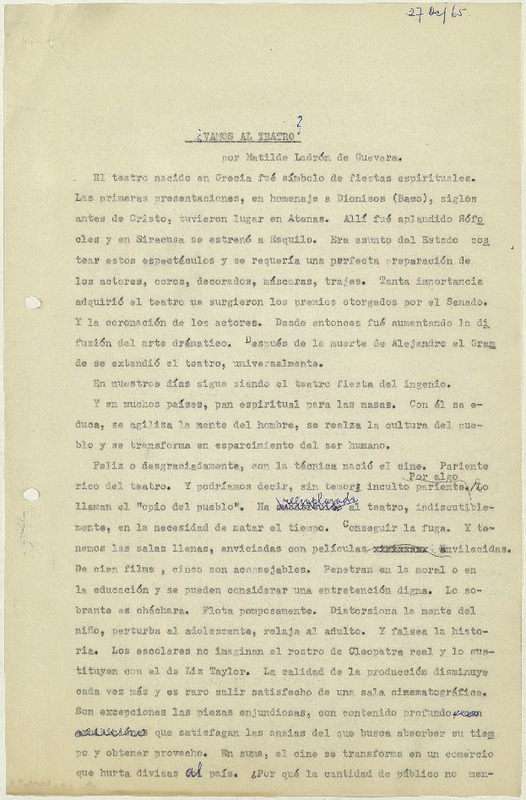 ¿Vamos al teatro? [manuscrito] Matilde Ladrón de Guevara.