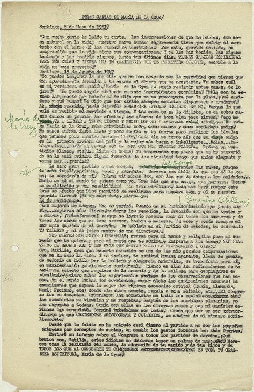 Manuscritos chilenos - Correspondencia - Autoras chilenas - Ladrón de Guevara, Matilde - Cruz, María de la