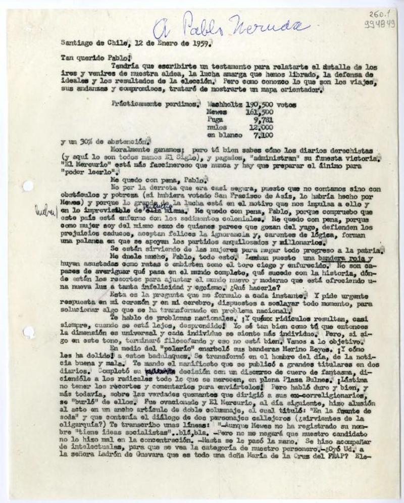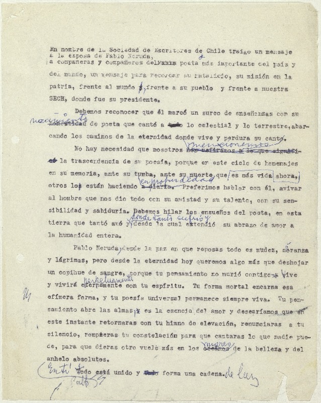 Homenajes - Neruda, Pablo - Manuscritos chilenos