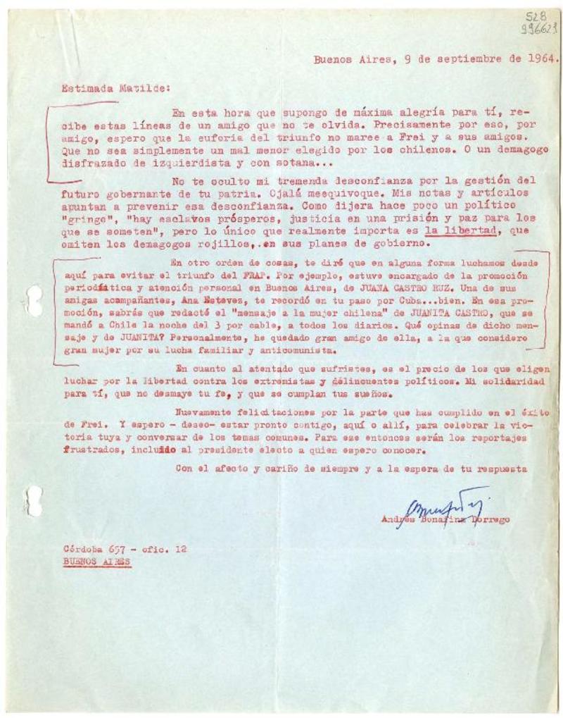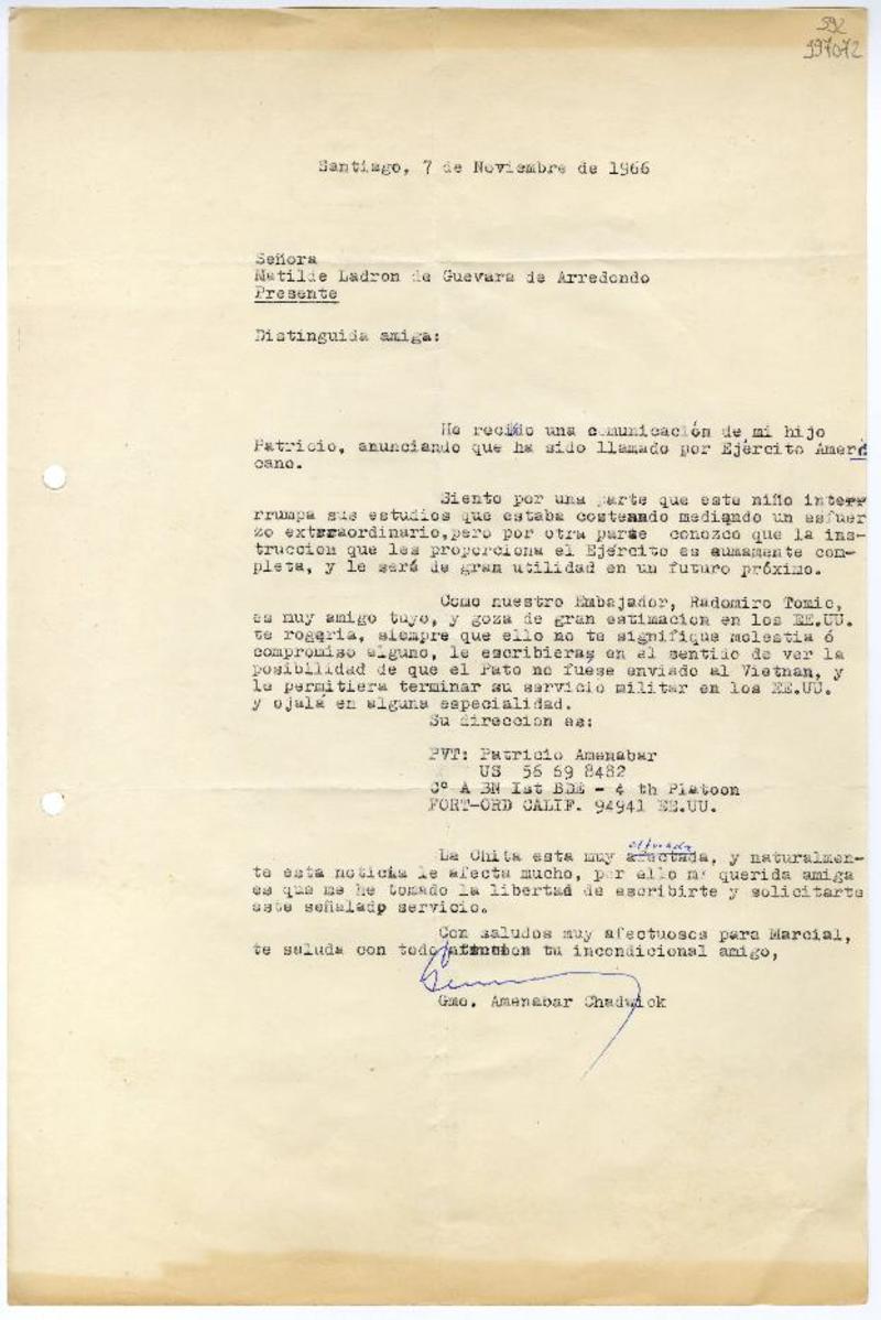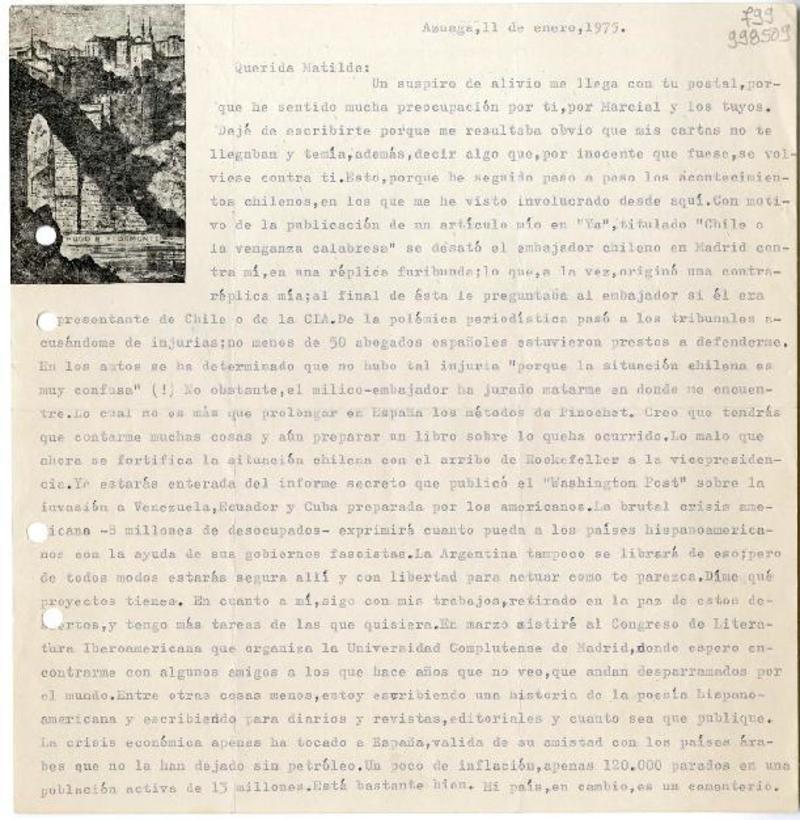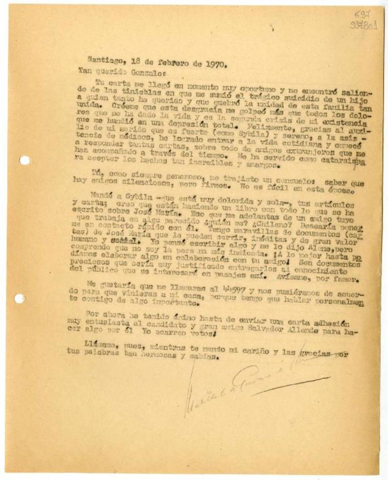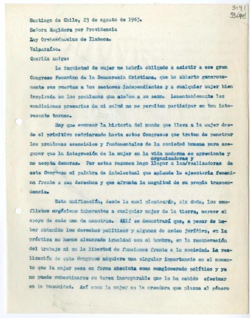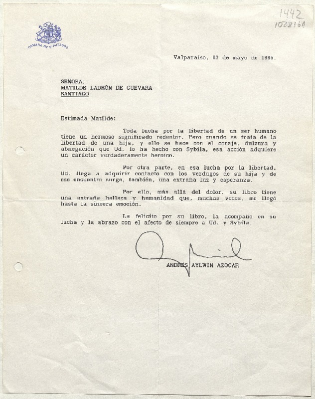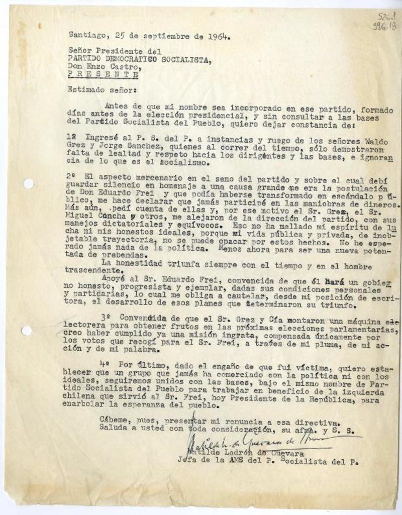Manuscritos chilenos - Correspondencia - Autoras chilenas - Ladrón de Guevara, Matilde - Aylwin, Patricio