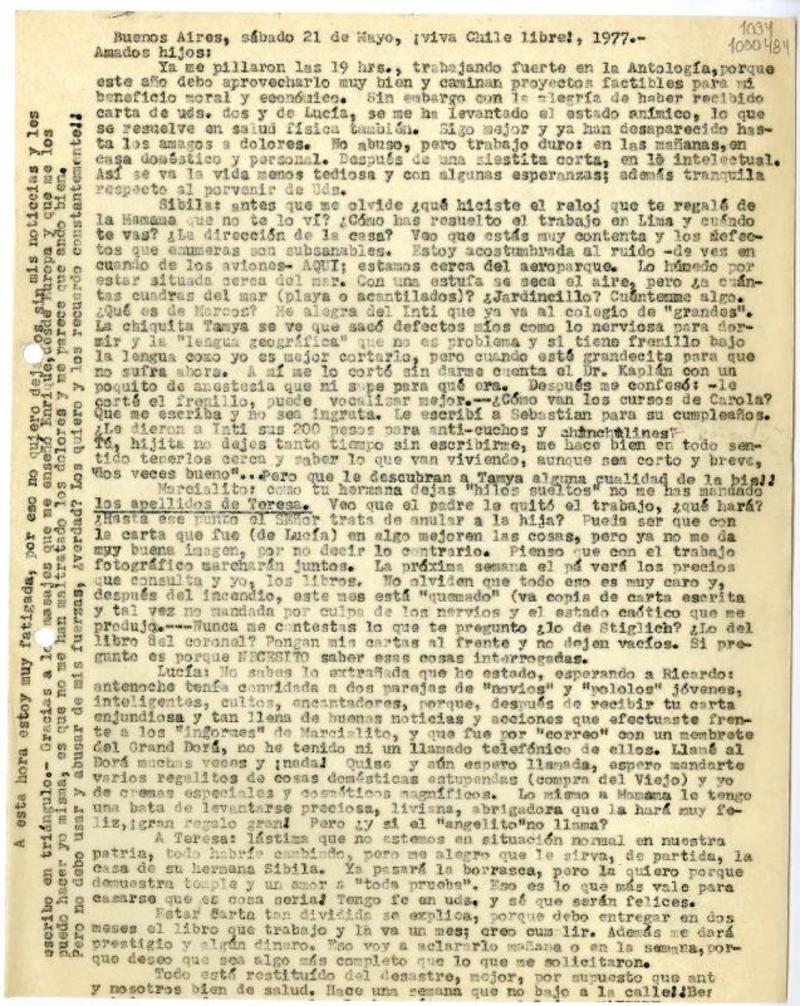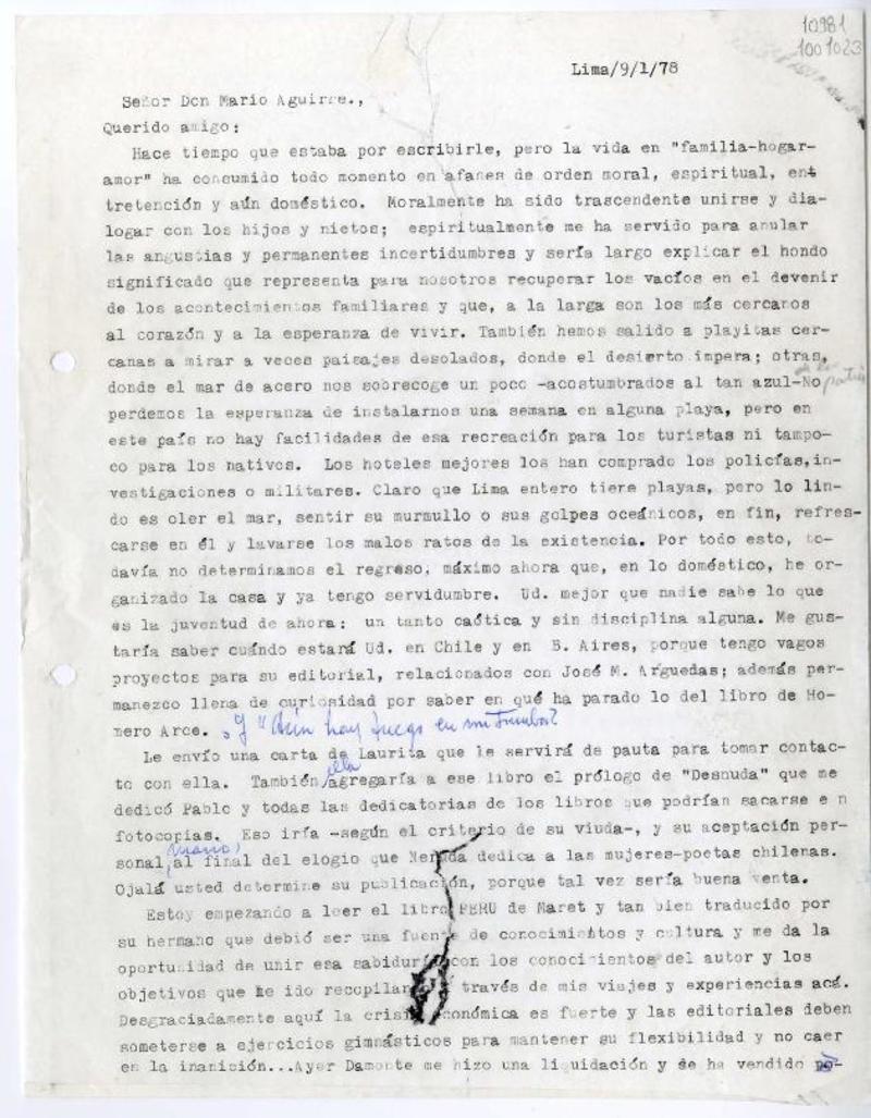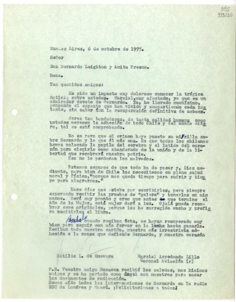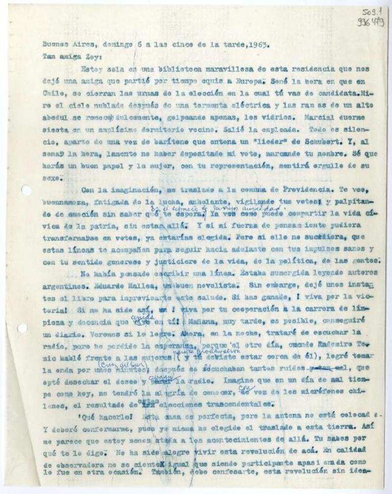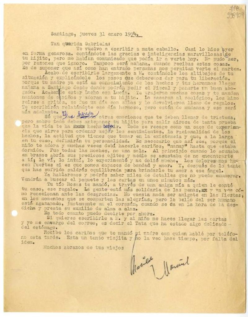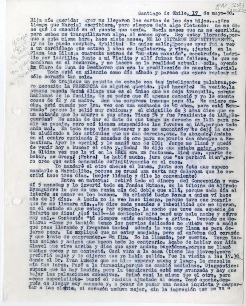 Manuscritos chilenos - Correspondencia - Autoras chilenas - Ladrón de Guevara, Matilde - Aylwin, Patricio