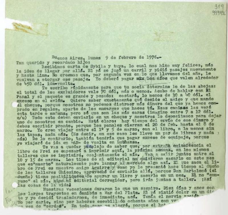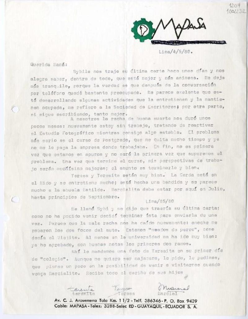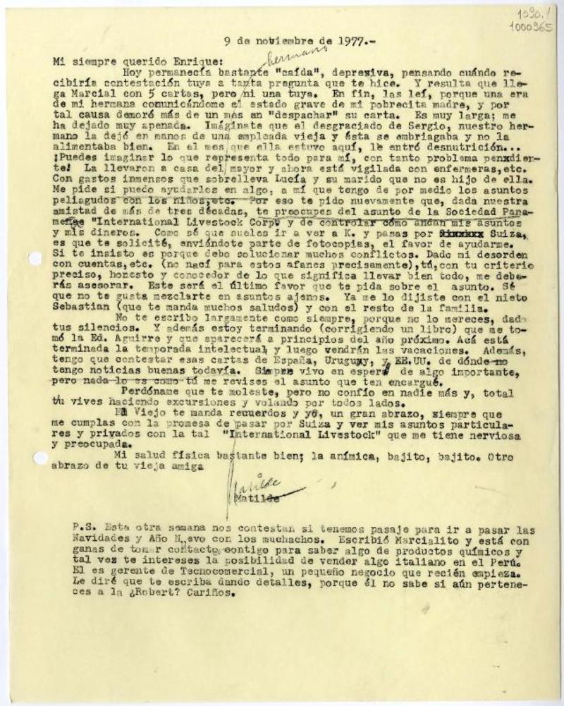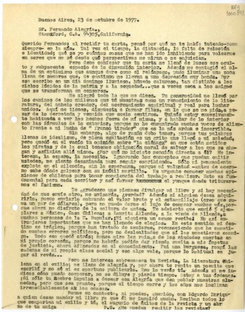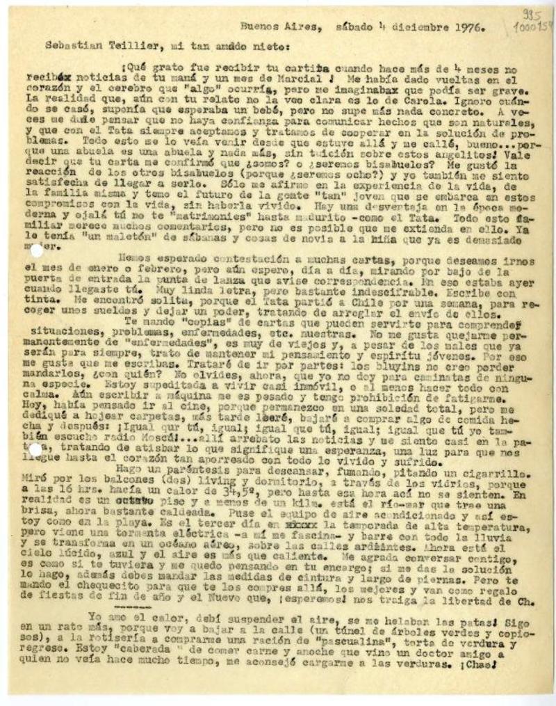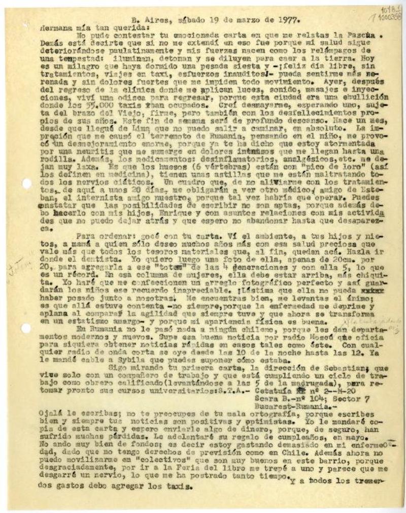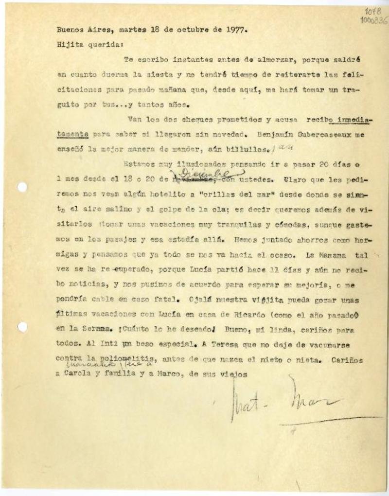Manuscritos chilenos - Correspondencia - Autoras chilenas - Ladrón de Guevara, Matilde - Aylwin, Patricio