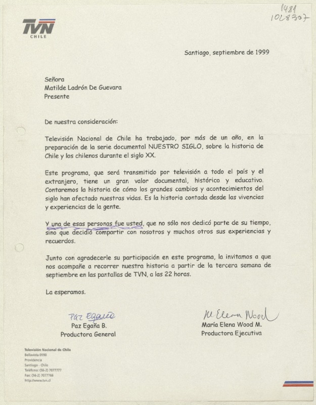Ladrón de Guevara, Matilde - Entrevistas - Manuscritos chilenos