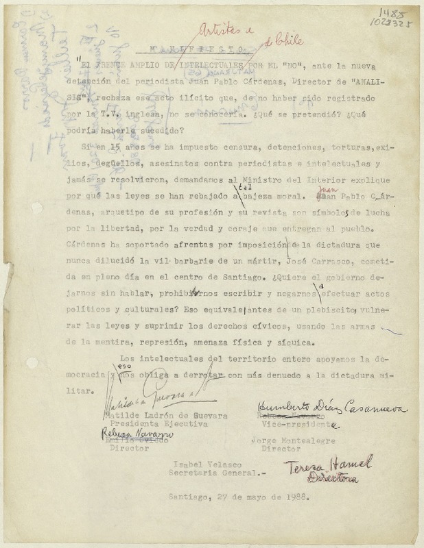 Articulos chilenos - Manuscritos chilenos - Arredondo, Sybila