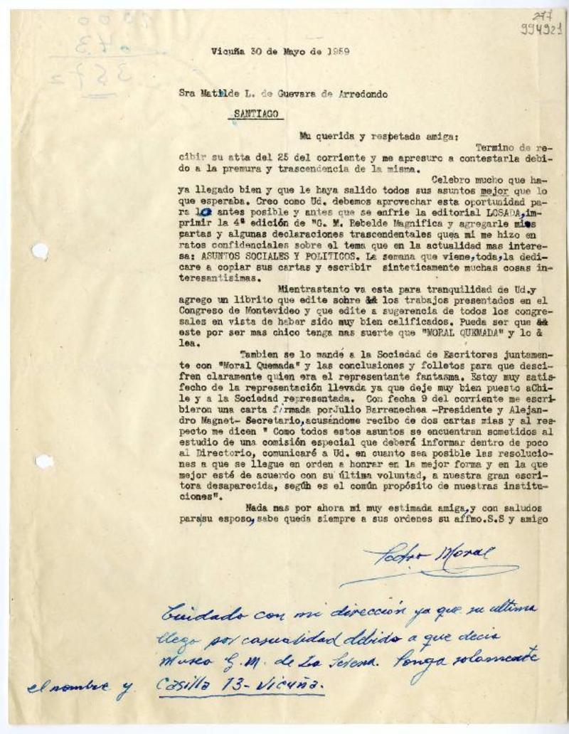 Ladrón de Guevara, Matilde - Autoras chilenas - Correspondencia - Autores chilenos - Manuscritos chilenos - Lafourcade, Enrique