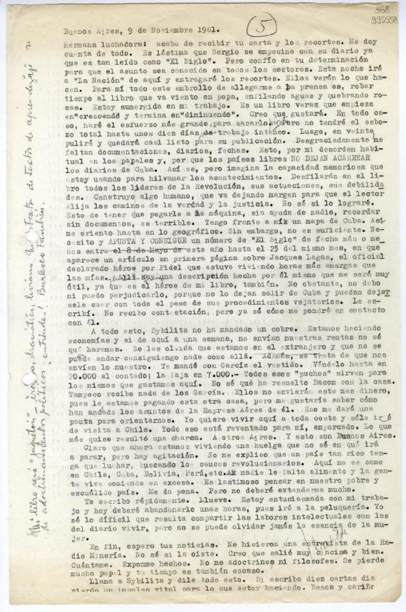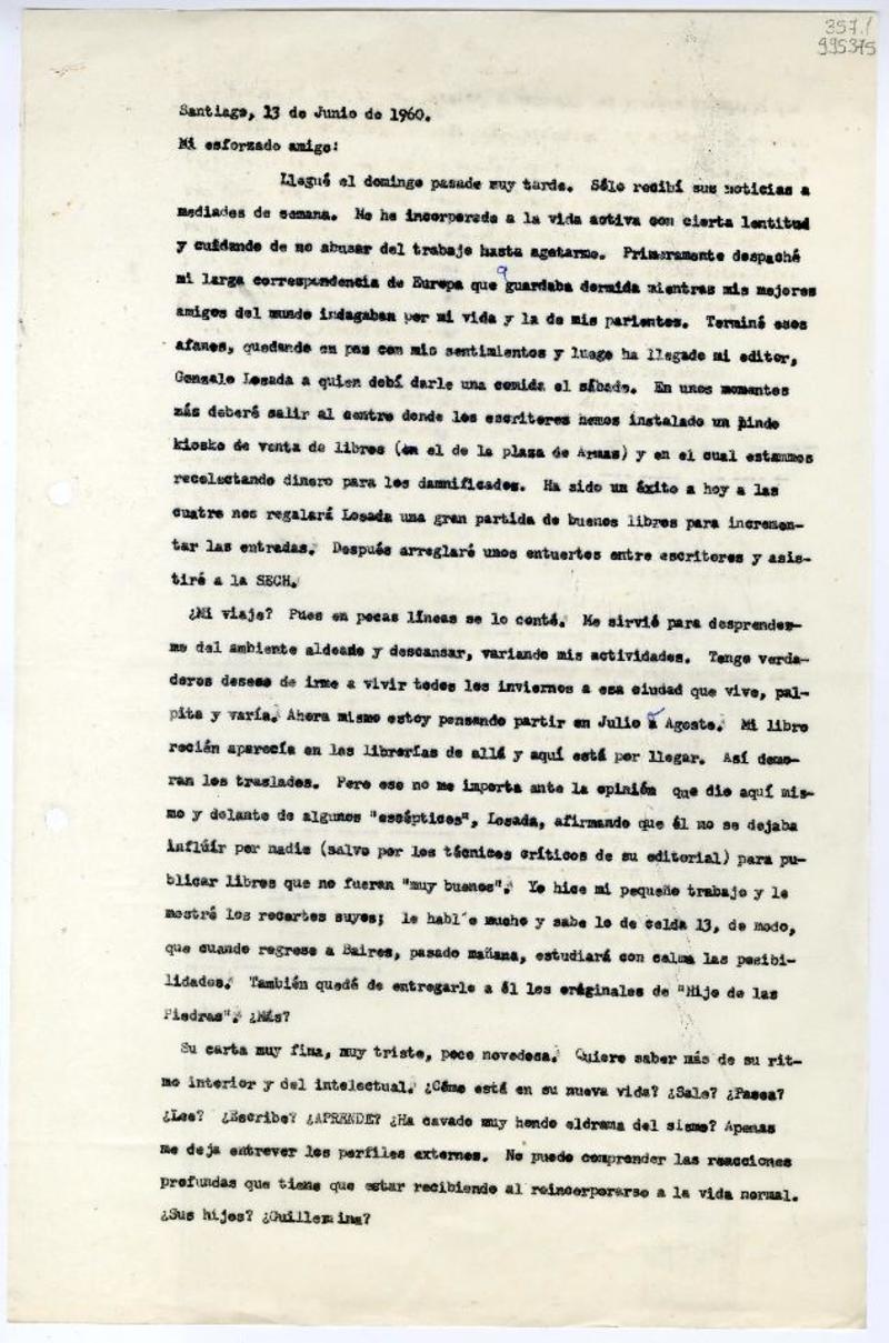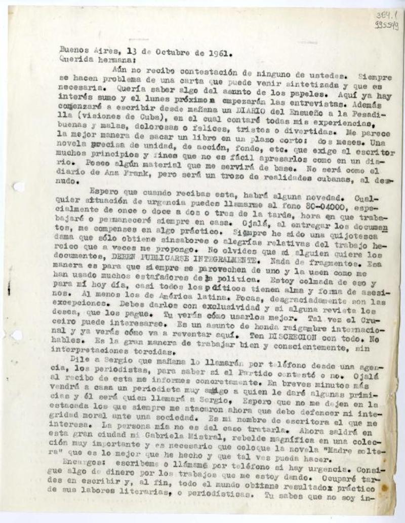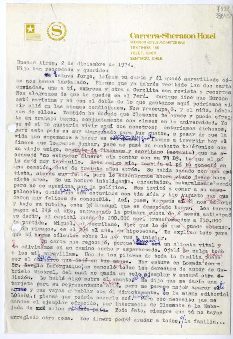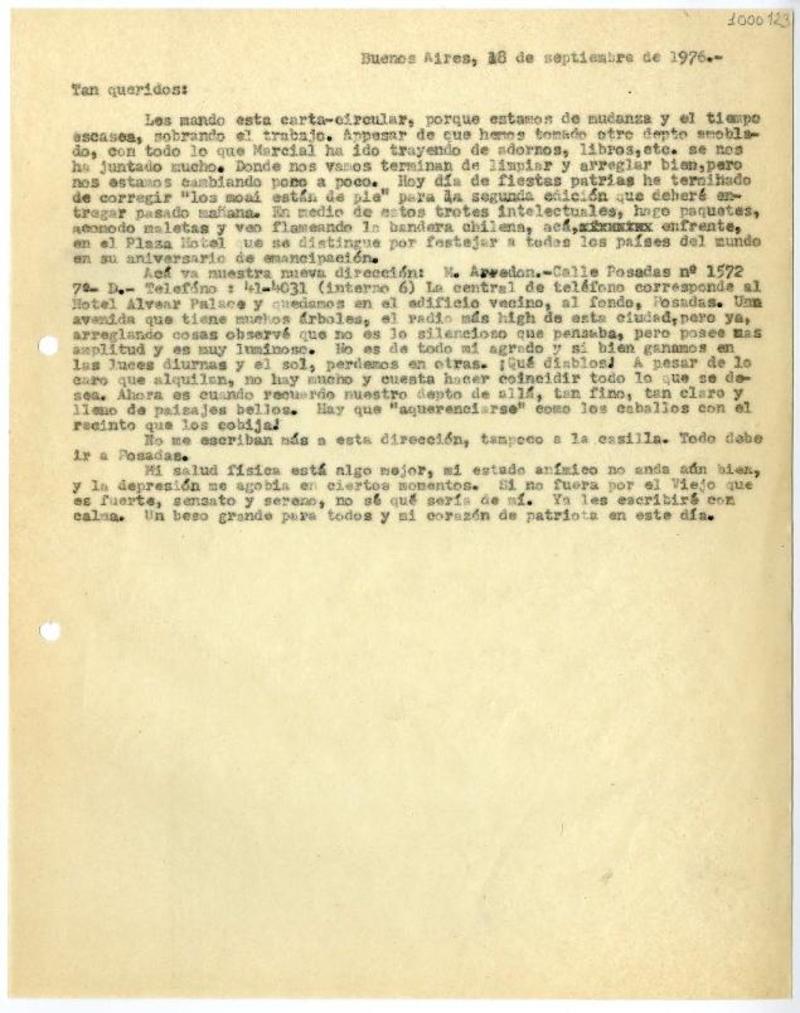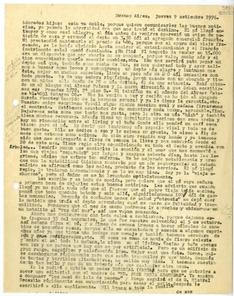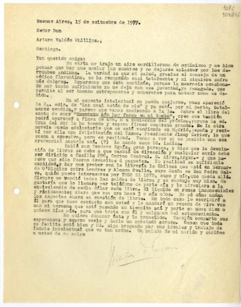 [Telegrama] 1959 septiembre 2, Buenos Aires [a] Matilde Ladrón de Guevara, Santiago [manuscrito] [Gonzalo] Losada.