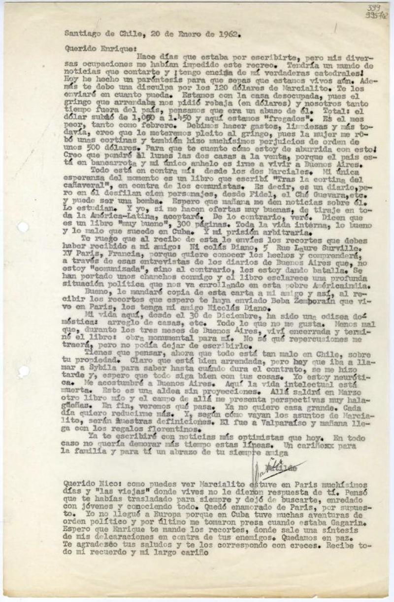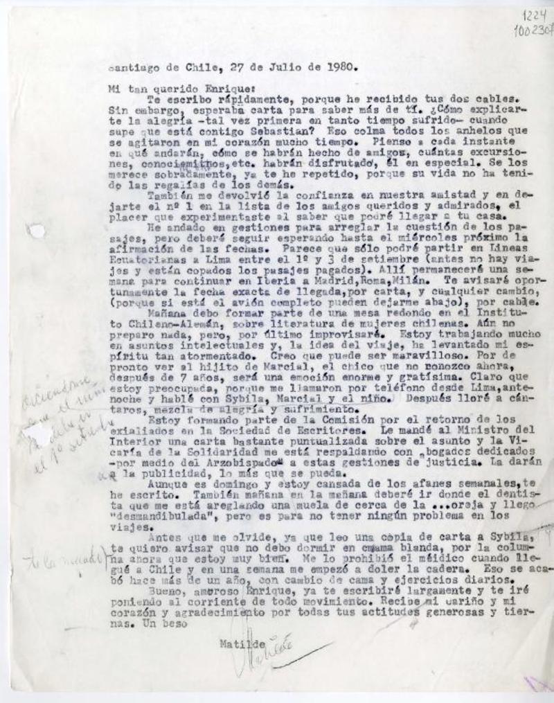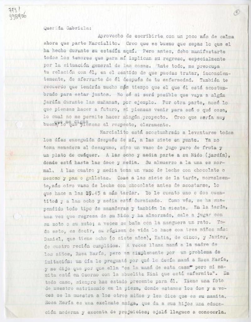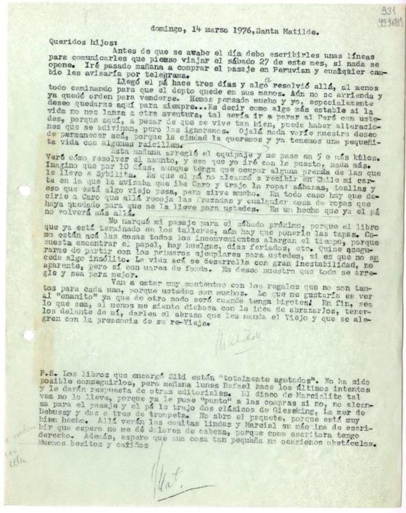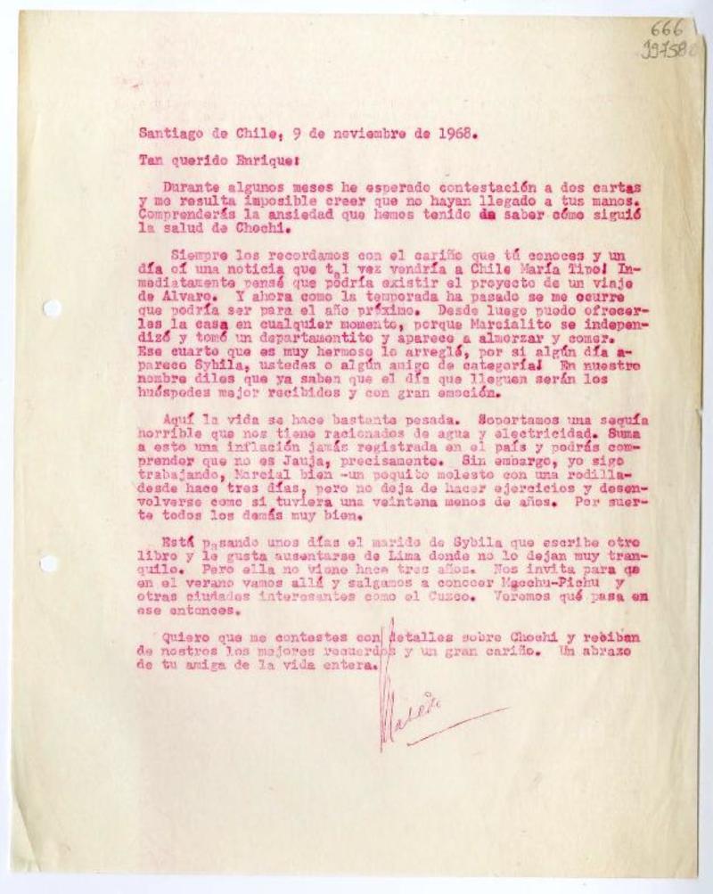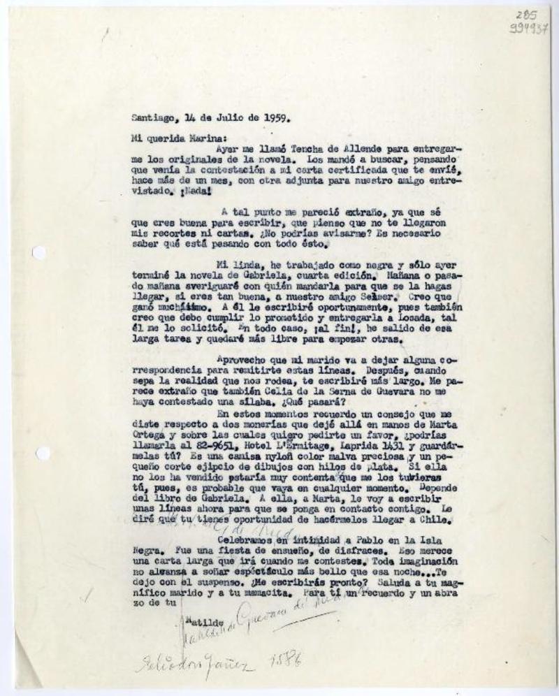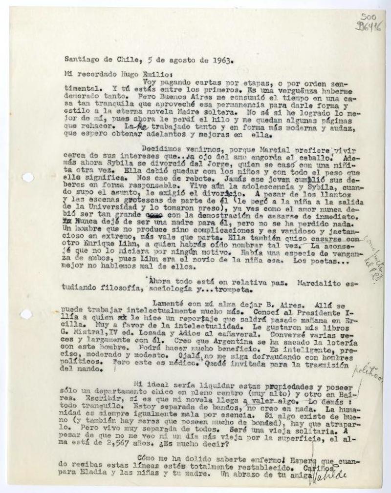 Silva Temme, Marcelo - Ladrón de Guevara, Matilde - Manuscritos chilenos - Correspondencia
