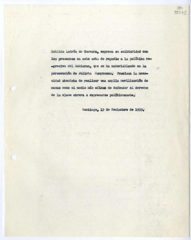 [Aclaración pública] [manuscrito] Matilde Ladrón de Guevara.