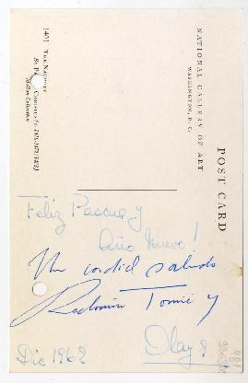 [Tarjeta] 1962 diciembre, [Santiago] [a] Matilde [manuscrito] Radomiro Tomic y Olaya.
