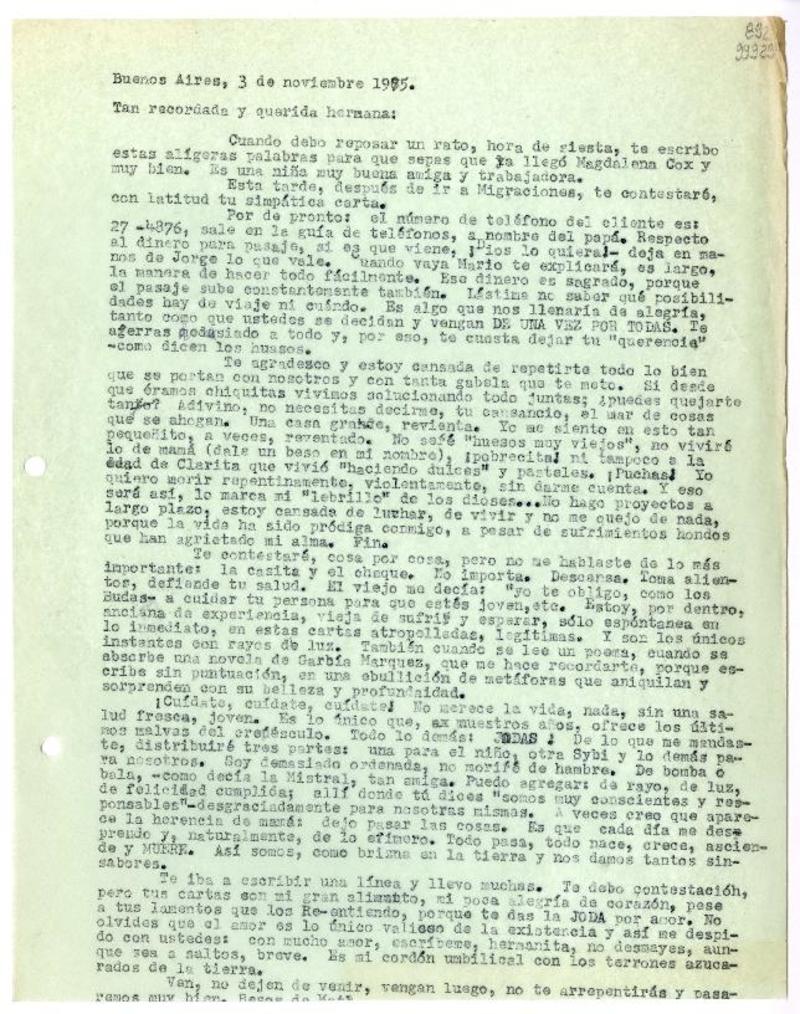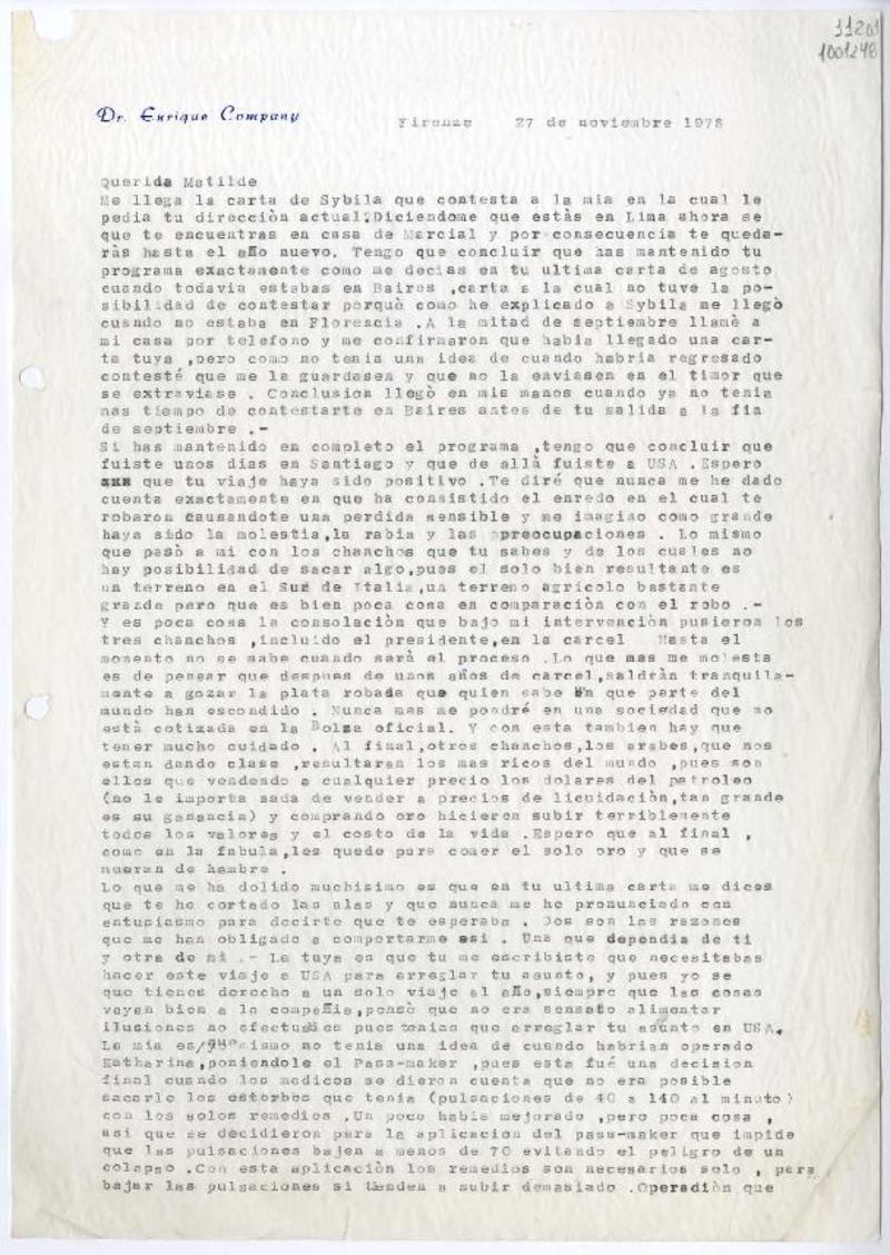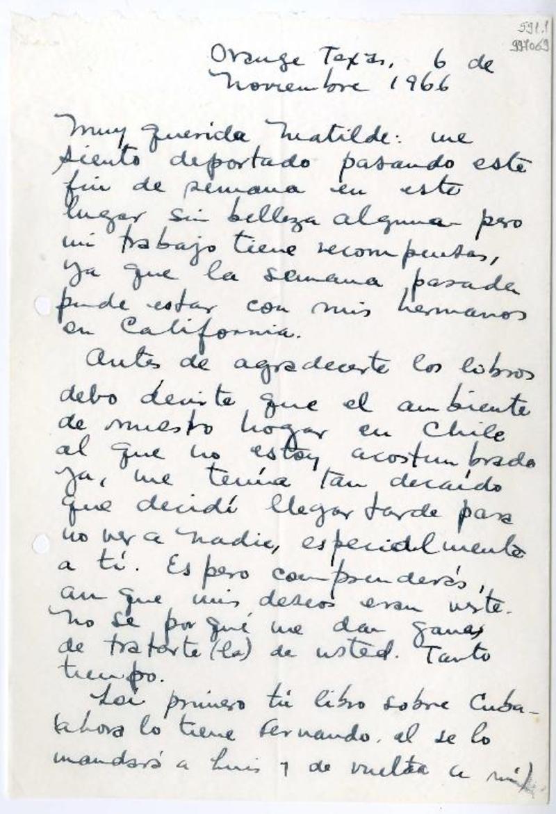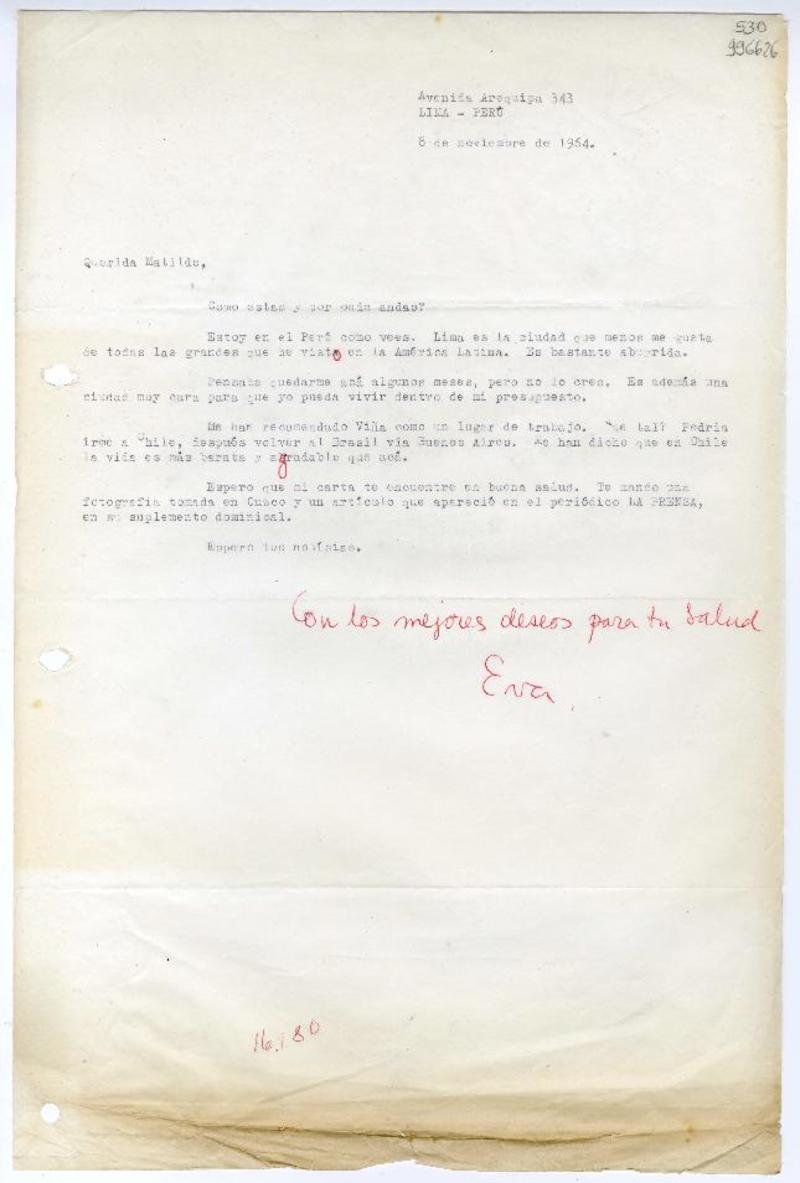 [Carta] 1951 noviembre 29, Buenos Aires, [Argentina] [a] Querida Matilde [manuscrito] Haydée [Elguera].