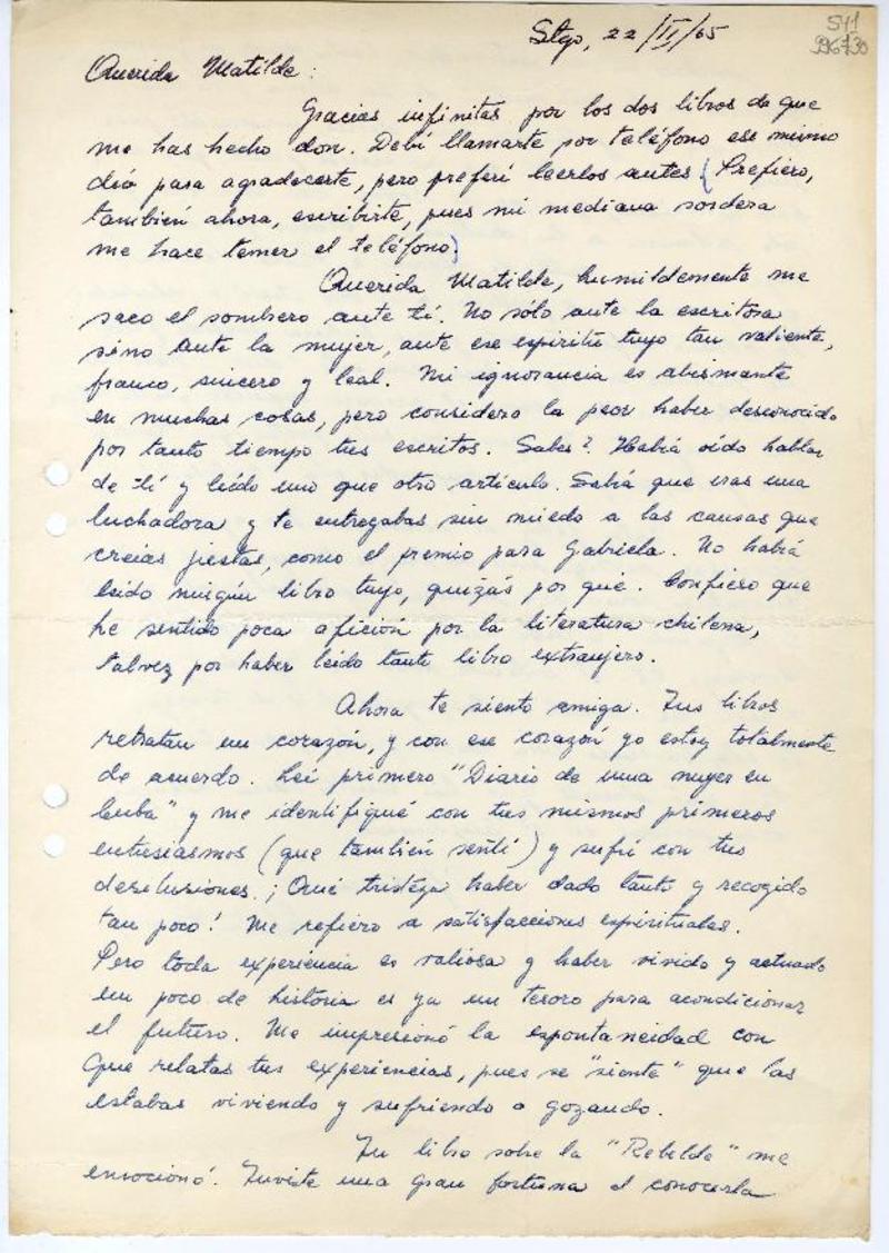 Vidal, Virginia - Autoras chilenas - Correspondencia - Manuscritos chilenos - Ladrón de Guevara, Matilde
