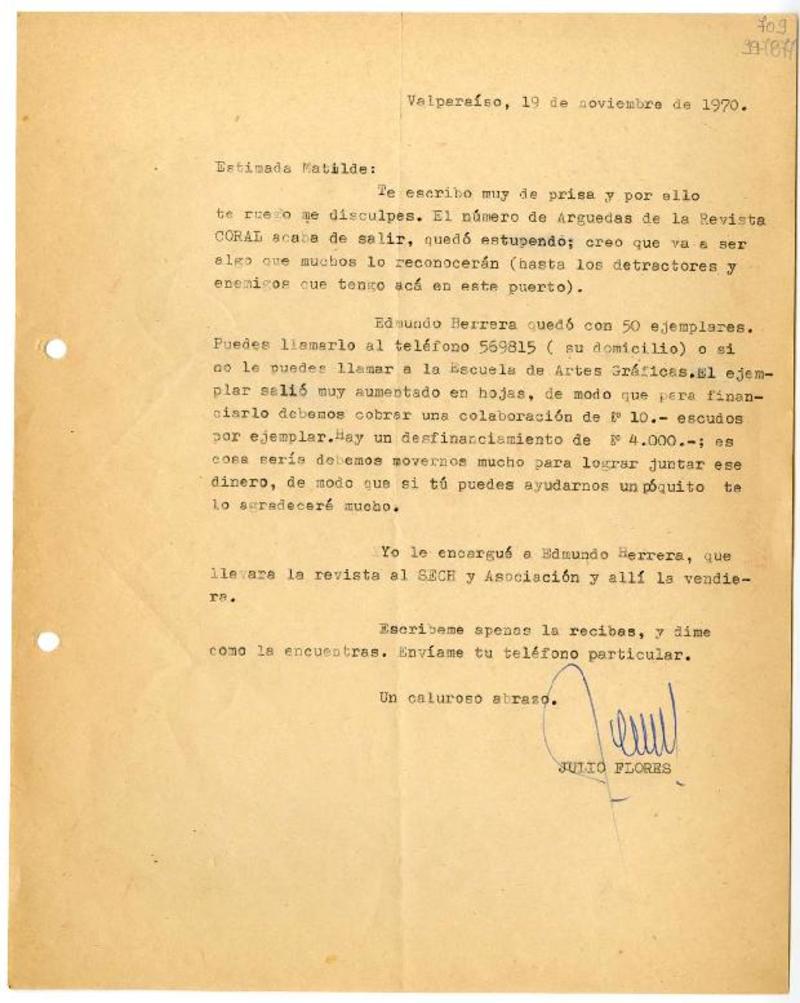 Hidalgo, Raúl - Ladrón de Guevara, Matilde - Manuscritos chilenos - Correspondencia