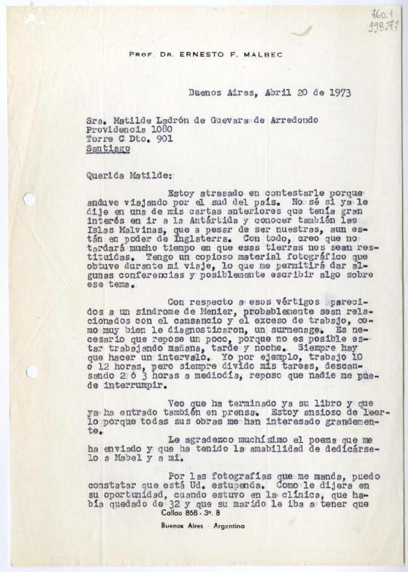 [Carta] 1953 abril 21, Argentina [a] Mi querida Matilde Ladrón de Guevara [manuscrito] [Ana Emilia Lahitte].