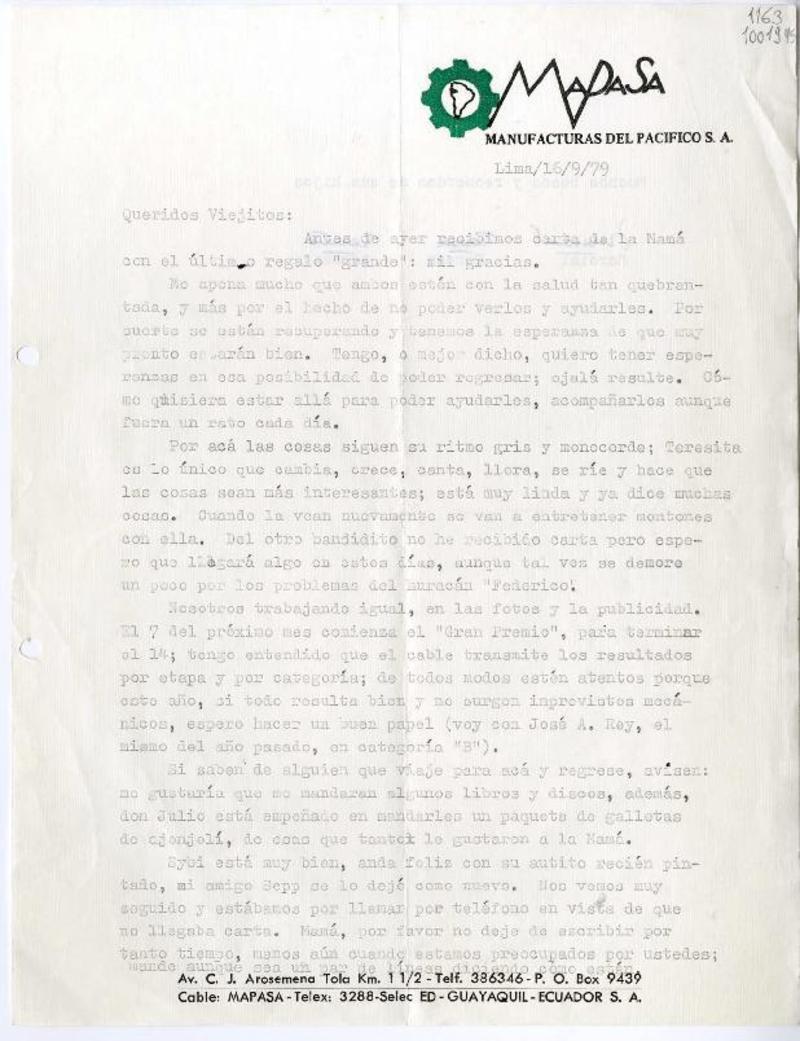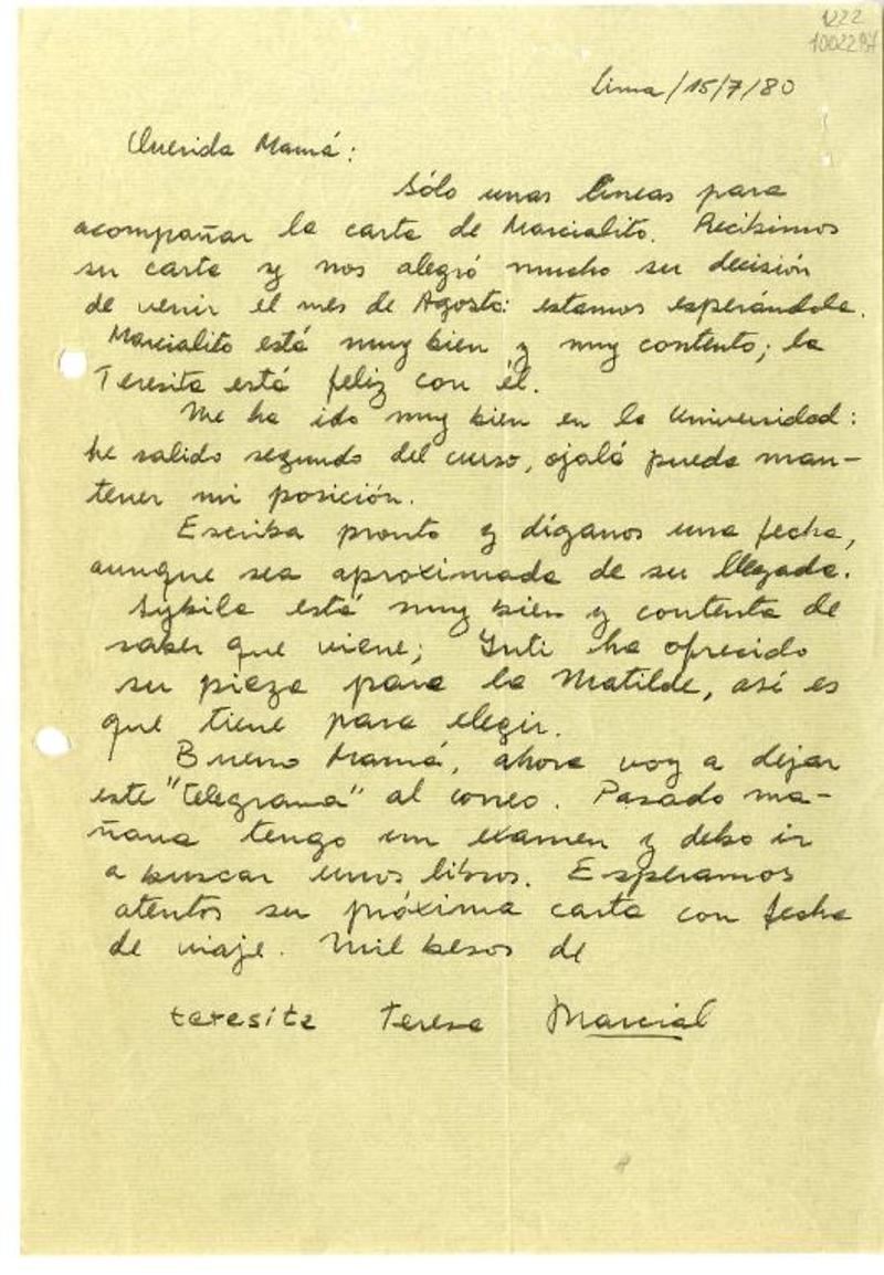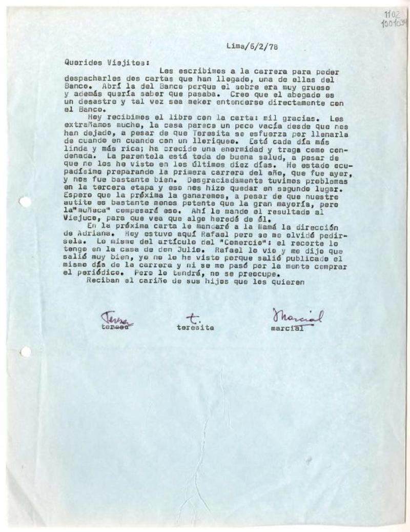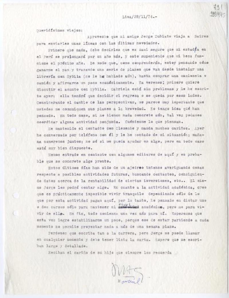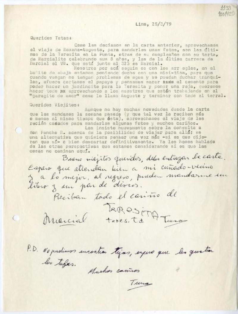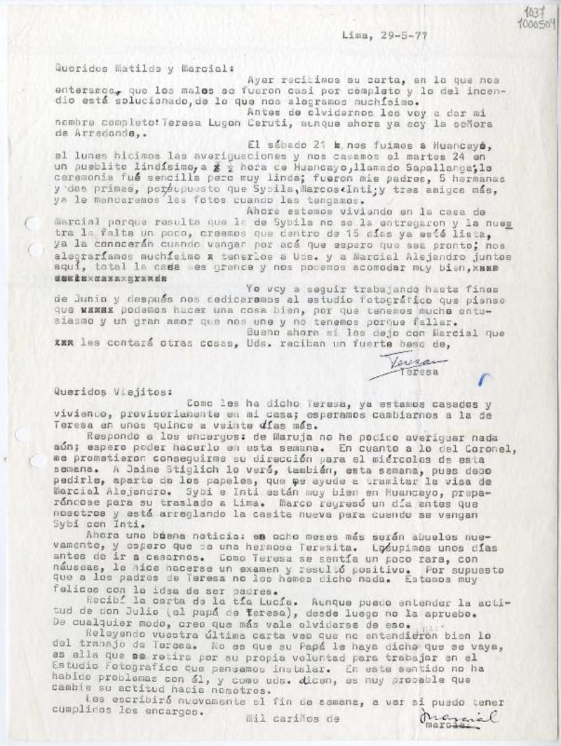 [Tarjeta Postal] 1973 diciembre 14, Perú [a] Queridos viejos [manuscrito] Mag [Marcial Arredondo Guevara].