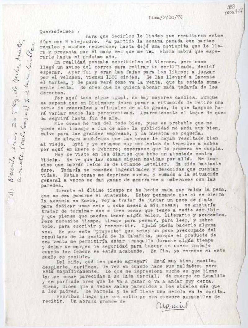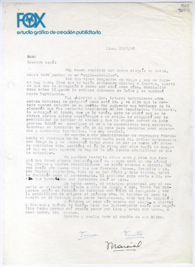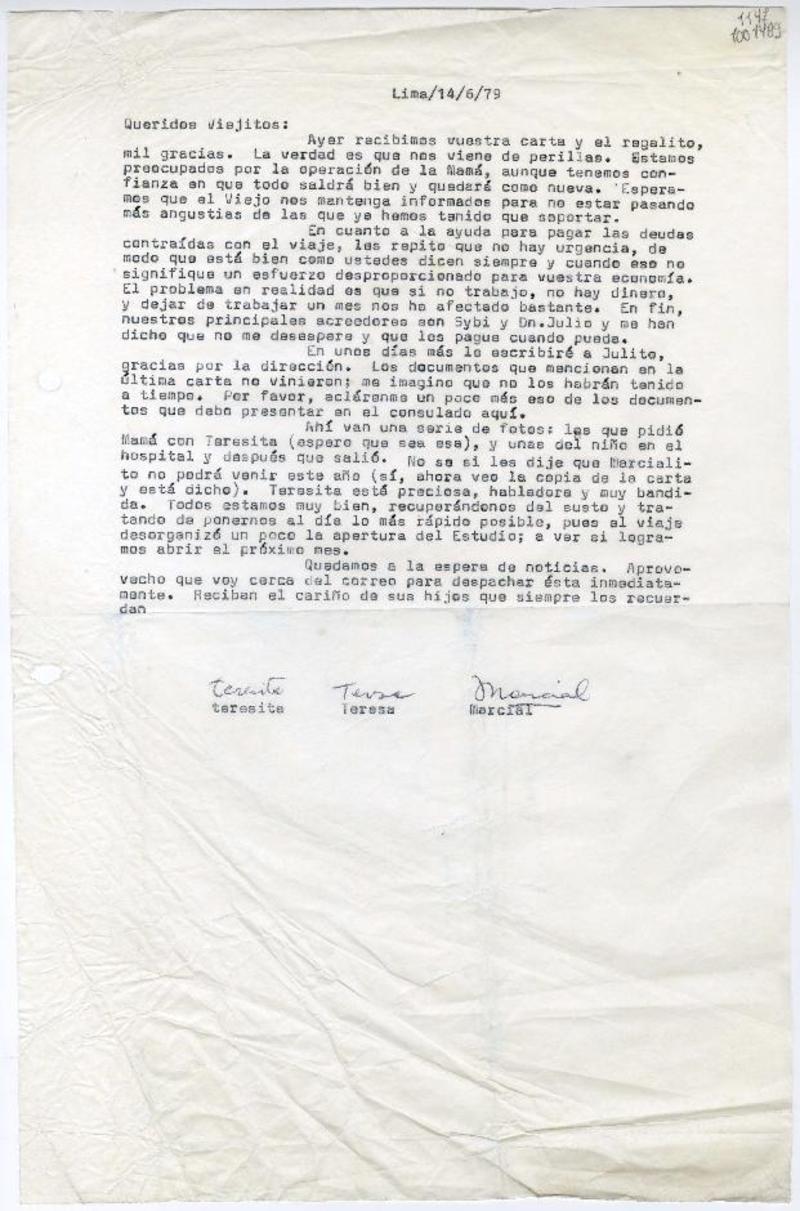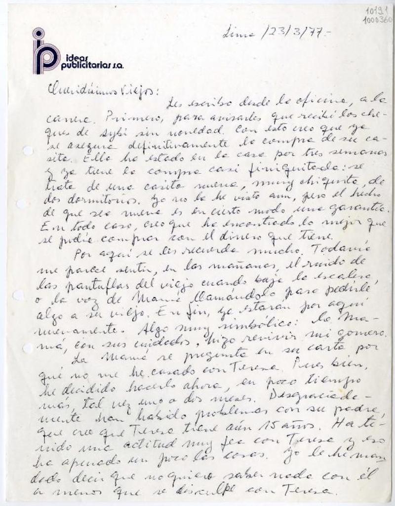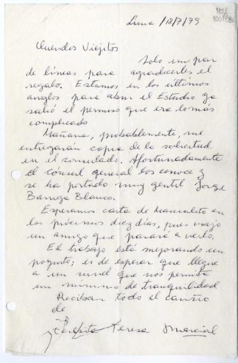 [Tarjeta Postal] 1973 diciembre 14, Perú [a] Queridos viejos [manuscrito] Mag [Marcial Arredondo Guevara].