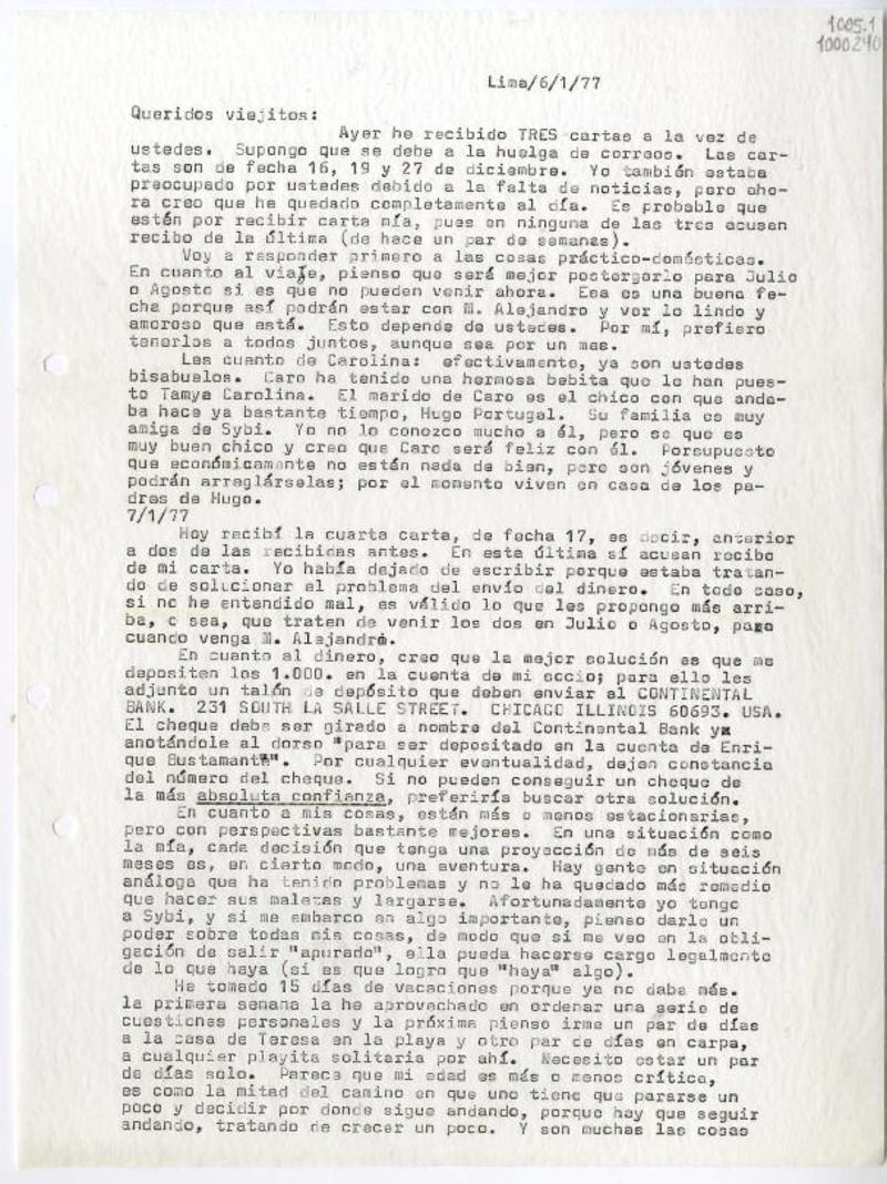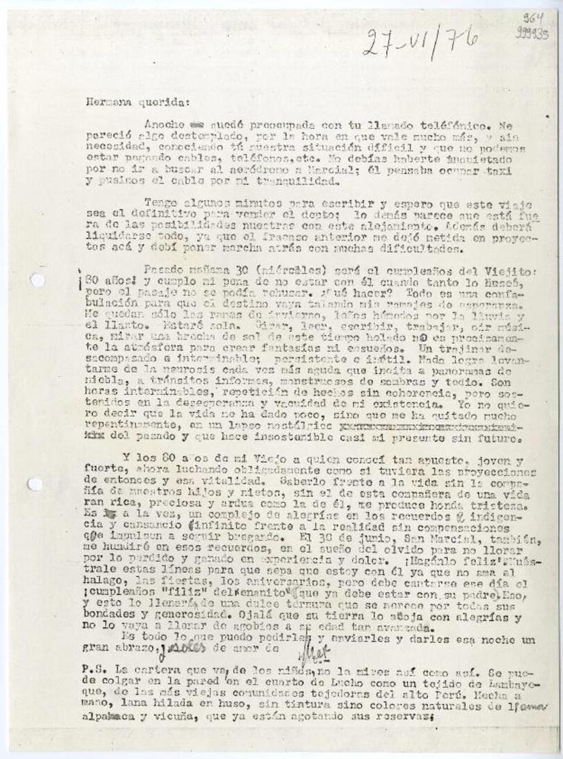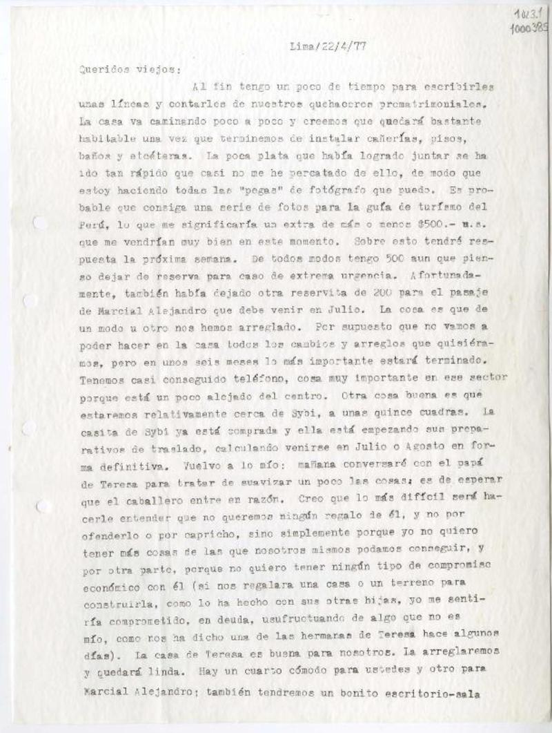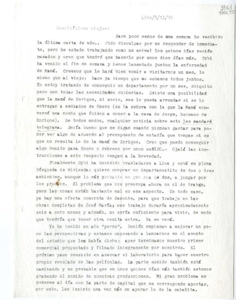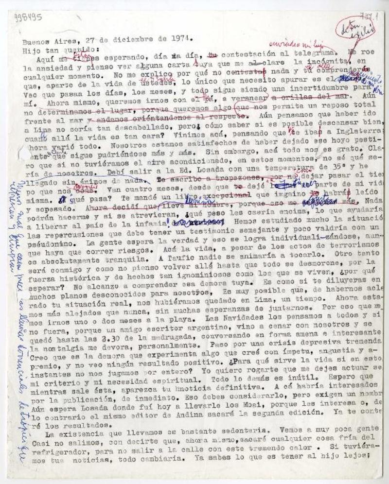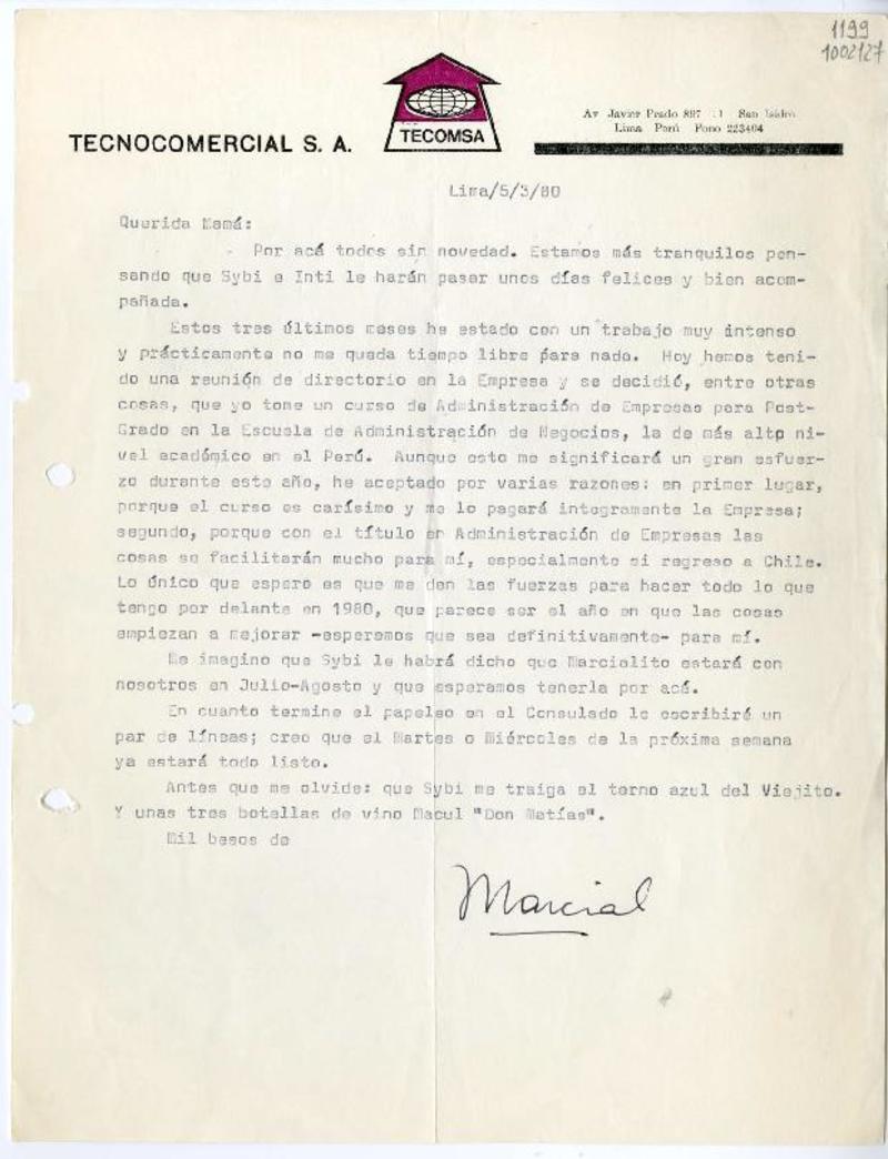[Tarjeta Postal] 1973 diciembre 14, Perú [a] Queridos viejos [manuscrito] Mag [Marcial Arredondo Guevara].