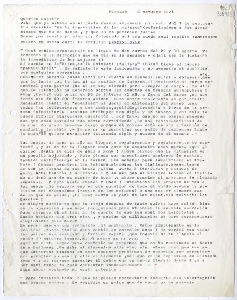 Pitigrilli - Correspondencia - Ladrón de Guevara, Matilde - Autores italianos - Manuscritos italianos