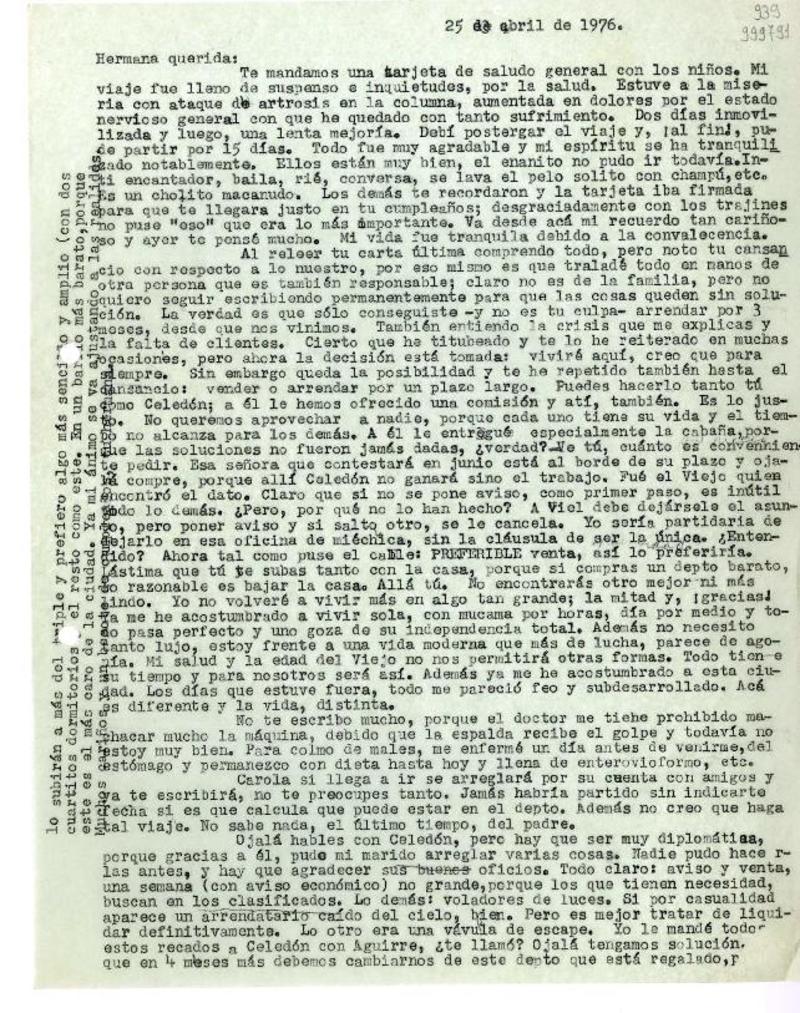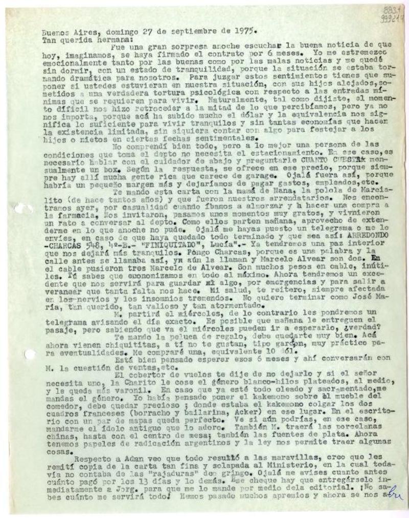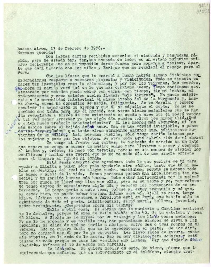 Elguera, Haydée - Correspondencia - Ladrón de Guevara, Matilde - Manuscritos argentinos