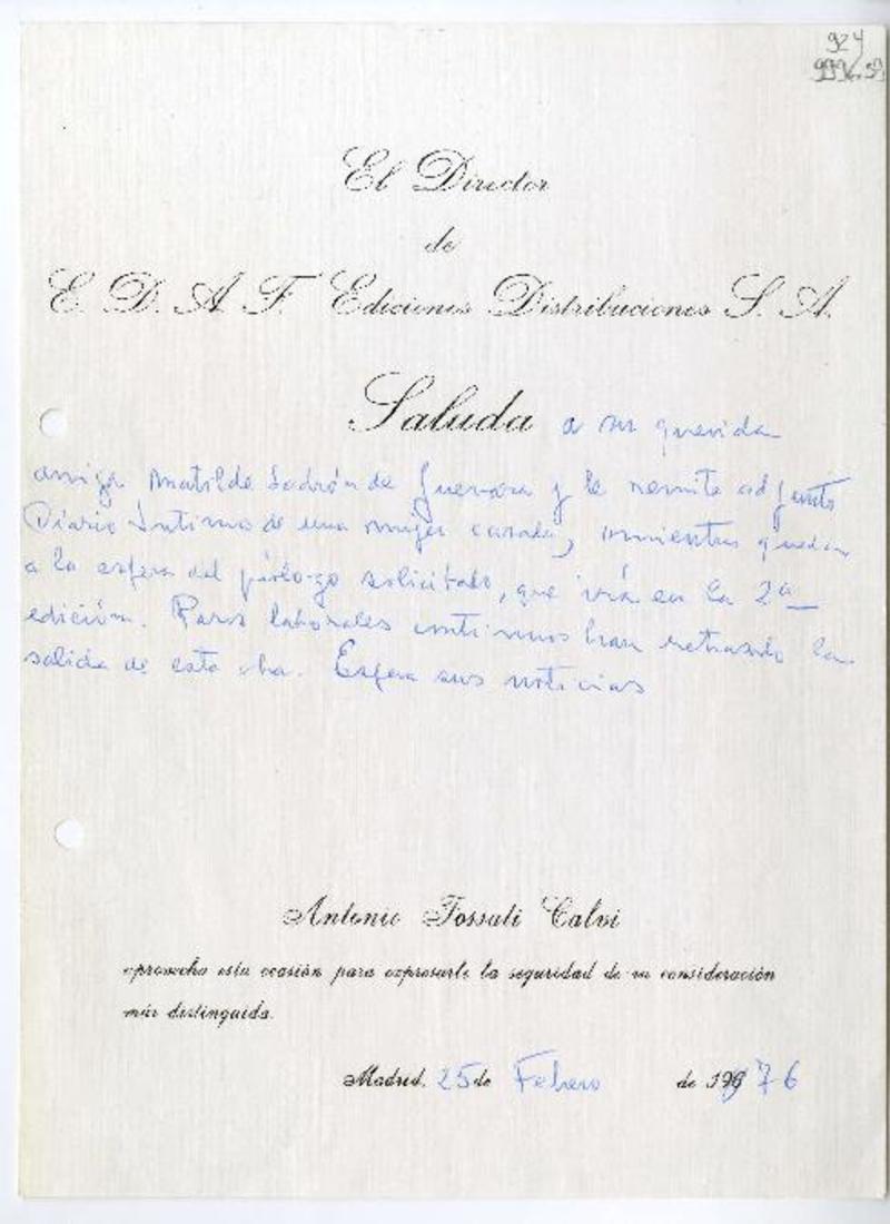 Manuscritos españoles - Correspondencia - Ladrón de Guevara, Matilde