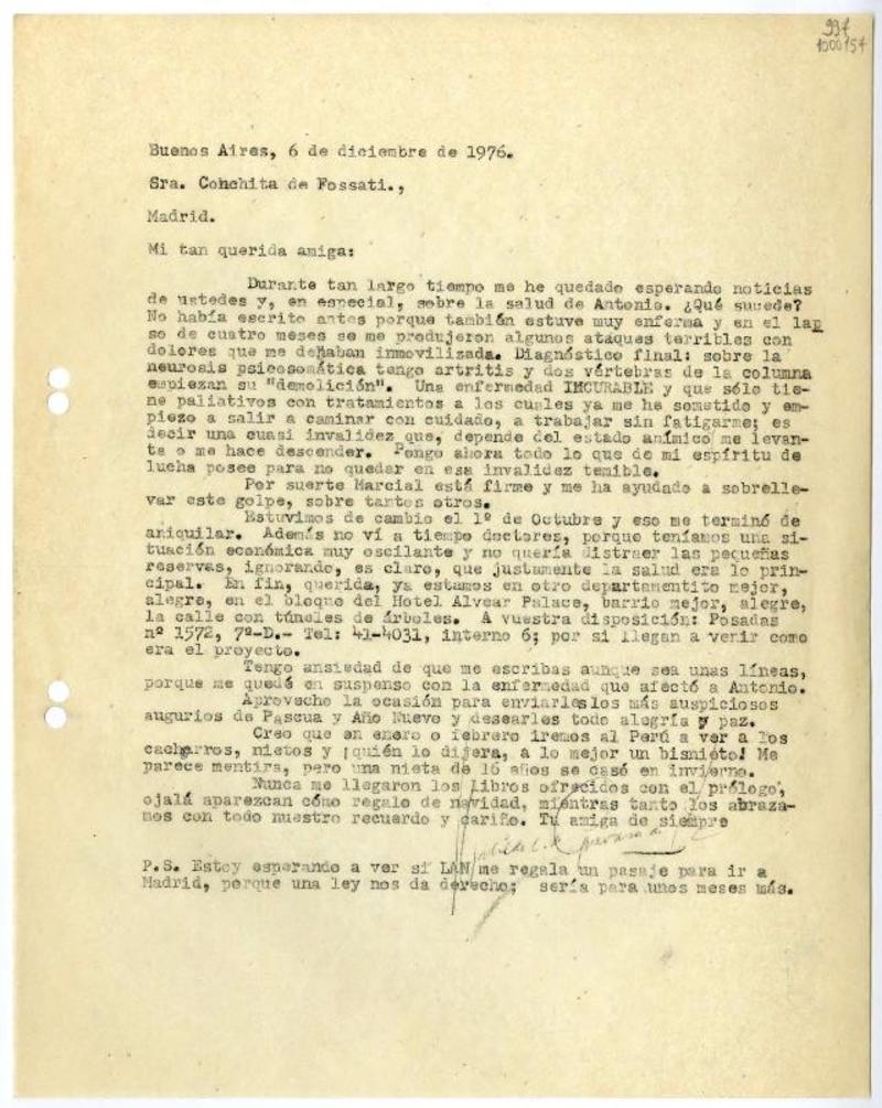 Correspondencia - Manuscritos uruguayos - Pedemonte, Hugo Emilio - Ladrón de Guevara, Matilde