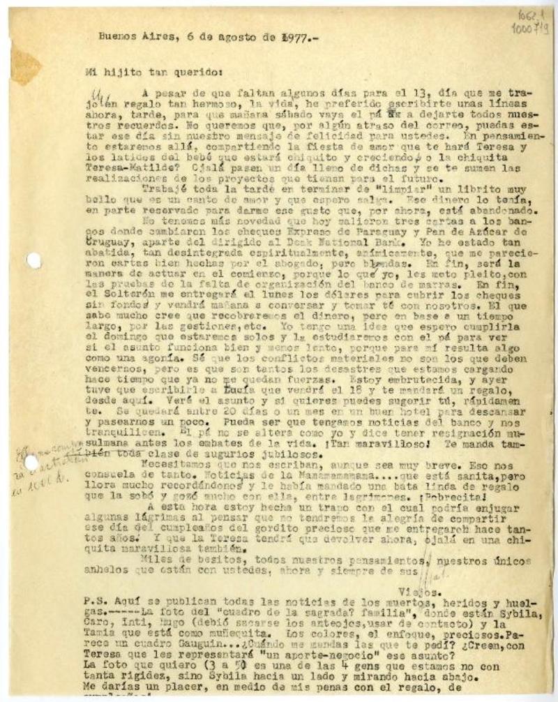 [Carta] 1953 agosto 27, Buenos Aires [a] Queridísima Matilde [manuscrito] Gladys Thein.
