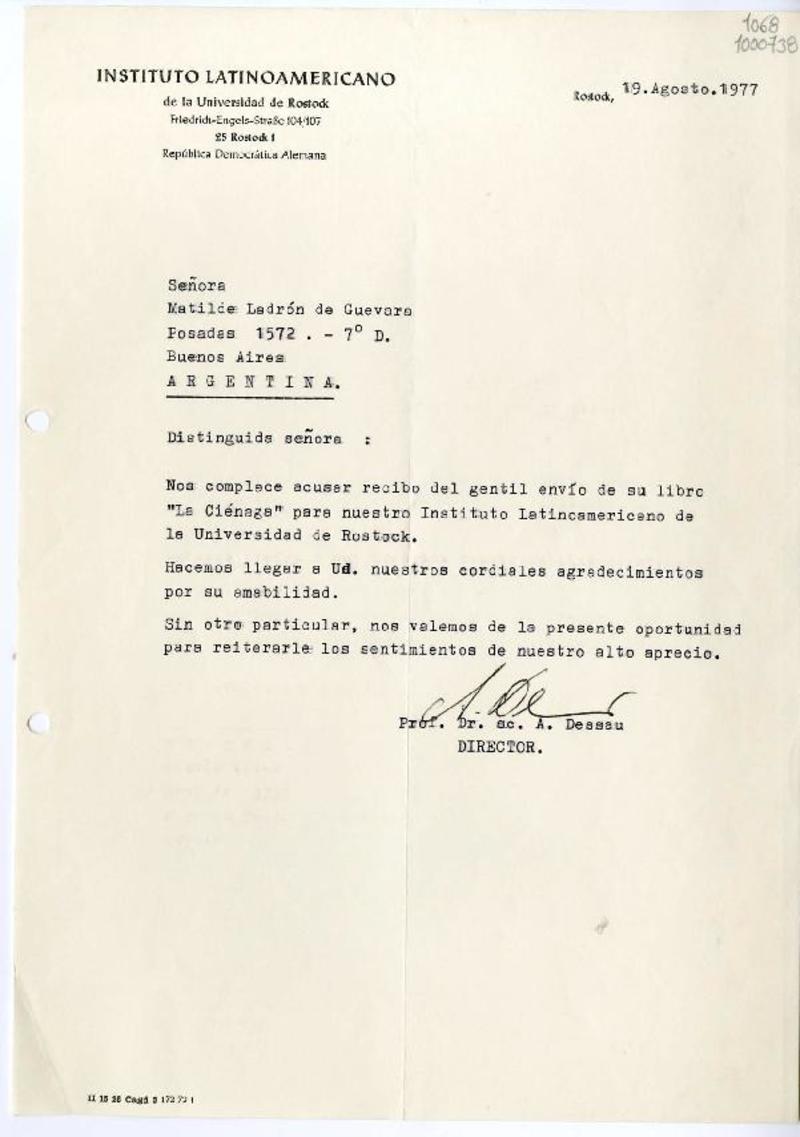 [Carta] 1952 diciembre 11, La Plata, [Argentina] [a] Matilde Ladrón de Guevara [manuscrito] Ana Emilia Lahitte.