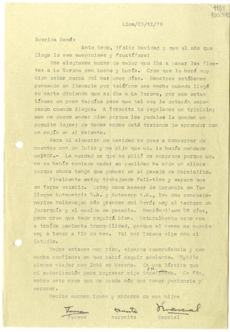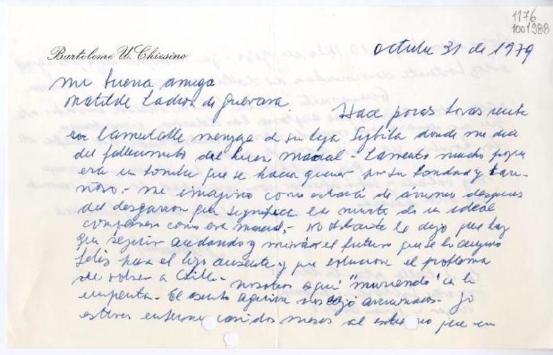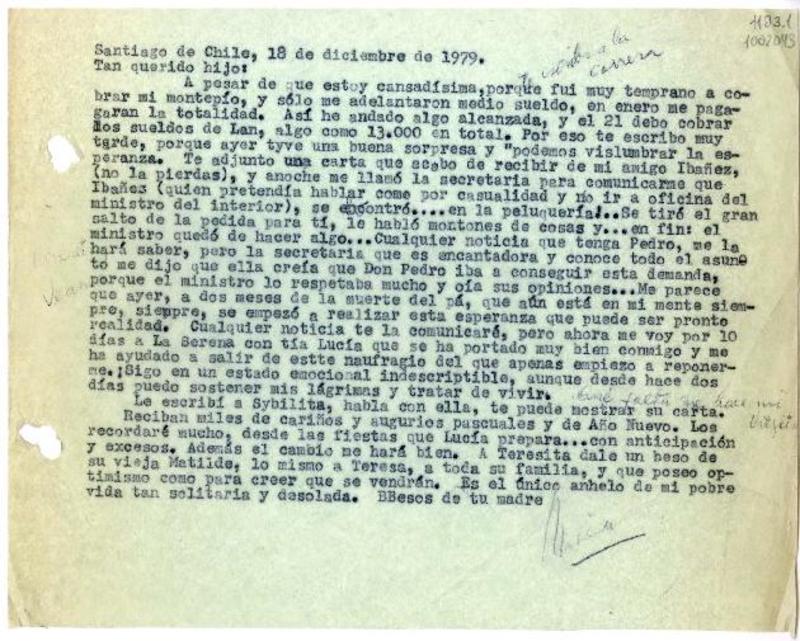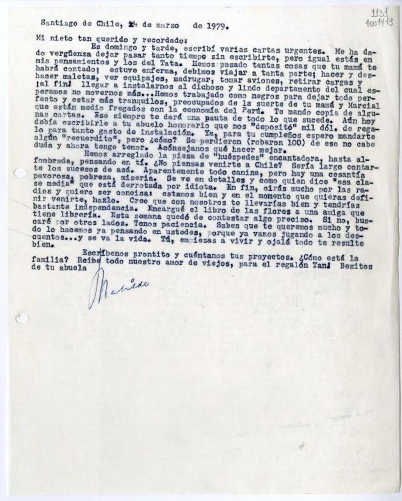 [Set de tarjetas] 1979, Santiago [a] Matilde Ladrón de Guevara [manuscrito]