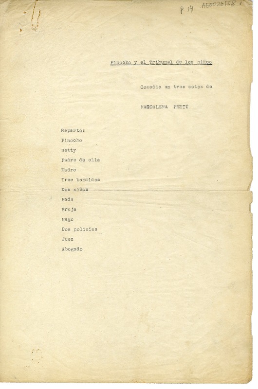 Pinocho y el tribunal de los niños [manuscrito] Magdalena Petit.