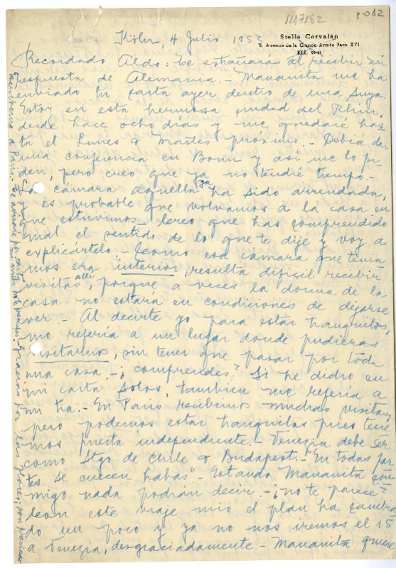 [Carta] 1953 julio 4, Khöln, Alemania [a] Aldo [Italia] [manuscrito] Stella Corvalán.
