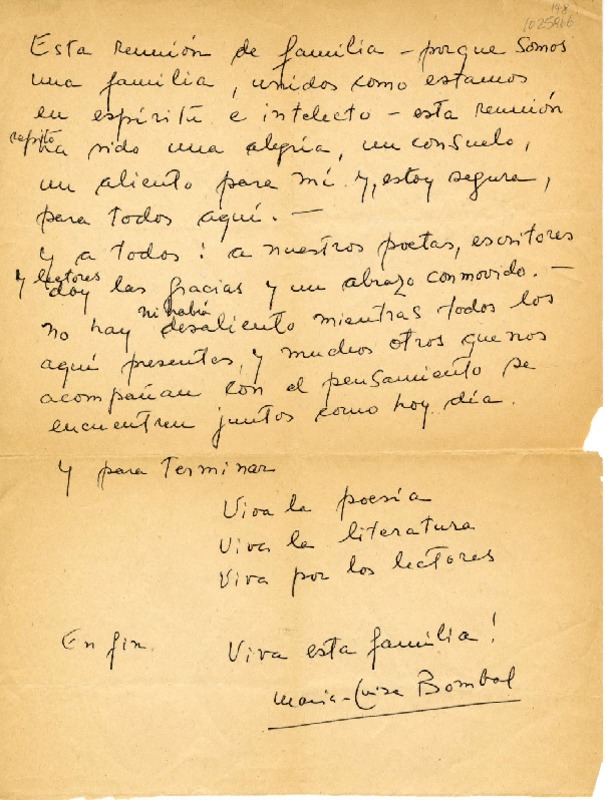 Turina, Pepita - Correspondencia - Autores chilenos - Manuscritos chilenos - Alegría, Fernando