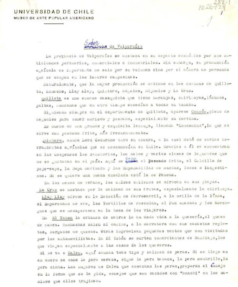 Sabor de Valparaiso [manuscrito] Oreste Plath.
