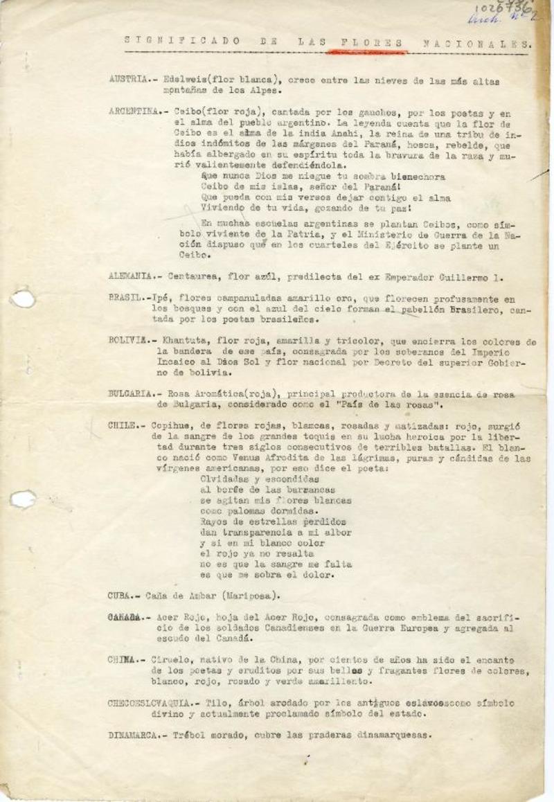 Significados de las flores nacionales [manuscrito] Oreste Plath.